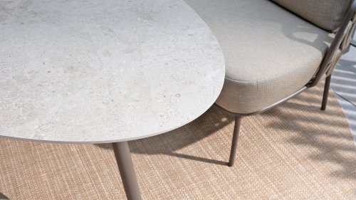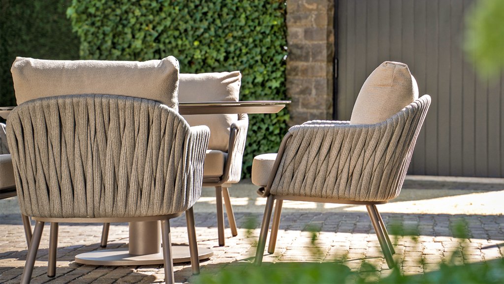 Das niedrige Gestell mit seinem weichen Seilgeflecht sorgt für einen entspannten, modernen Look, der perfekt zu einem gemütlichen Esserlebnis im Lounge-Stil passt. - Langlebig und wetterfest