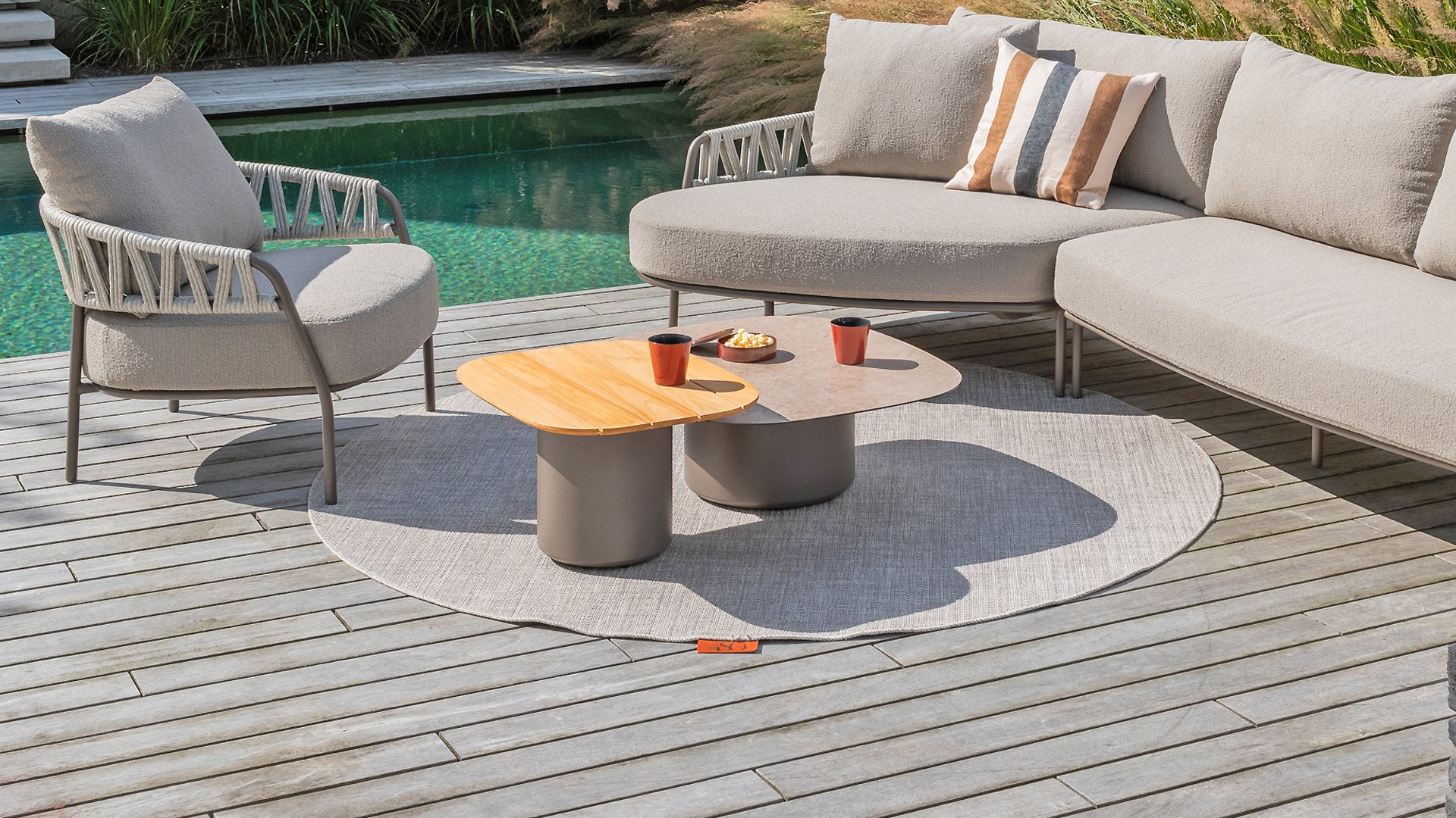 Zum Tango gehören zwei. Warum nur einen Couchtisch wählen, wenn Sie zwei haben können? Mit dem Taste 4Seasons Demi Couchtisch-Set erhalten Sie immer einen mit Teakholzplatte und einen mit Glaskeramikplatte. Wählen Sie die Farbe passend zu Ihrem Lounge-Set: Latte, Terre oder (Cloud).