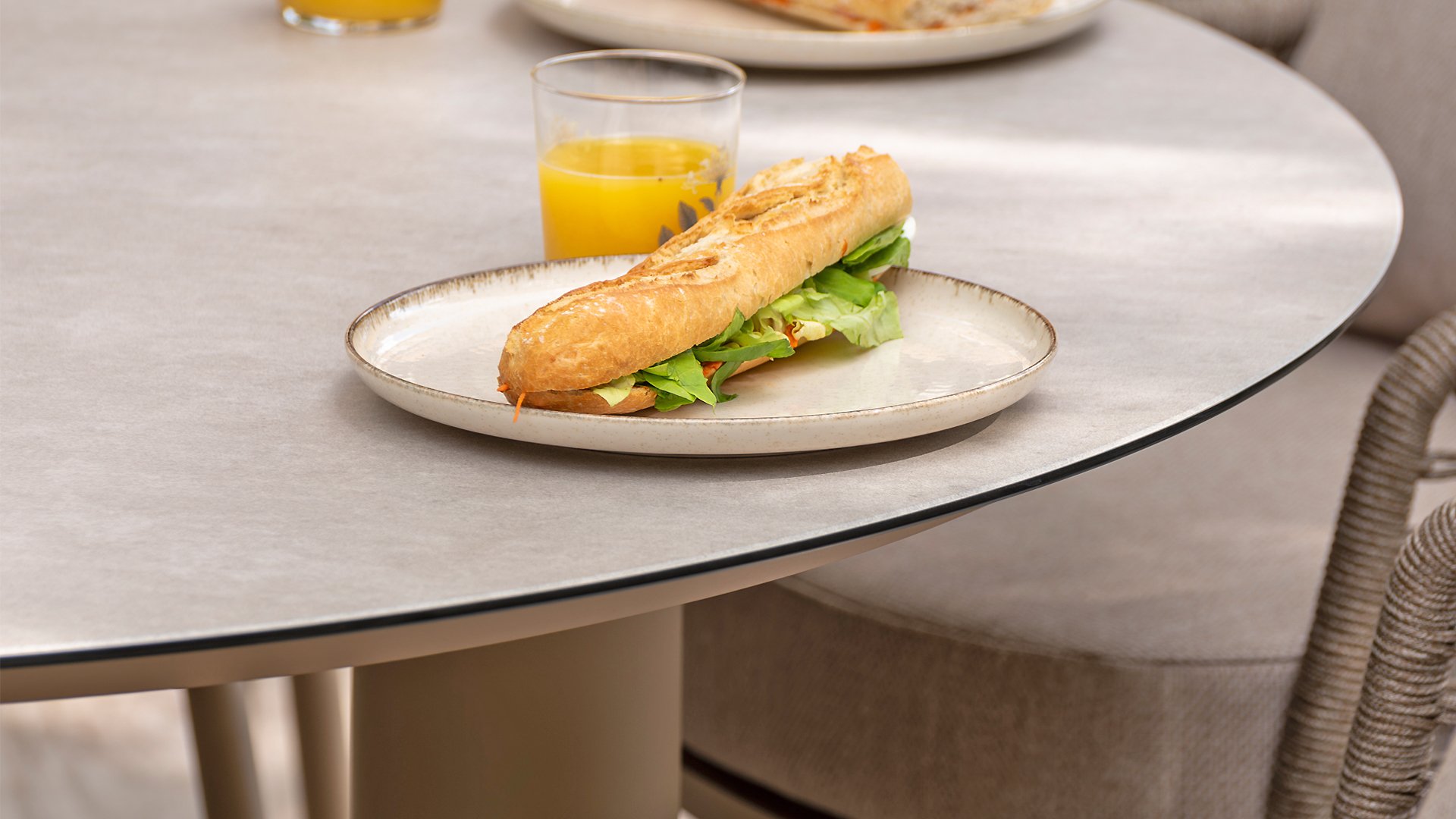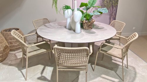 In der Taste by 4 Seasons Outdoor Donato-Serie gibt es einige Möglichkeiten, so ist er als Esstisch in den Farben erhältlich: Taste 4Seasons Donato Tisch Ø160cm Latte & Taste 4Seasons Donato Tisch Ø160 cm Terre, was es Ihnen ermöglicht, das perfekte Match für Ihr Interieur zu wählen. Um die Mayonnaise oder die Milch an die Person gegenüber zu reichen, fügen Sie einfach den: Taste 4Seasons Donato Lazy Susan dem Ganzen hinzu. Außerdem ist auch eine Low-Dining-Variante in der Farben Latte & Terre erhältlich, ideal für ein informelles und entspanntes Speiseerlebnis: Taste 4Seasons Donato Low Dining Tisch Ø160cm Latte, Taste 4Seasons Donato Low-Dining Tisch Ø160 cm Terre. Was gibt es noch?