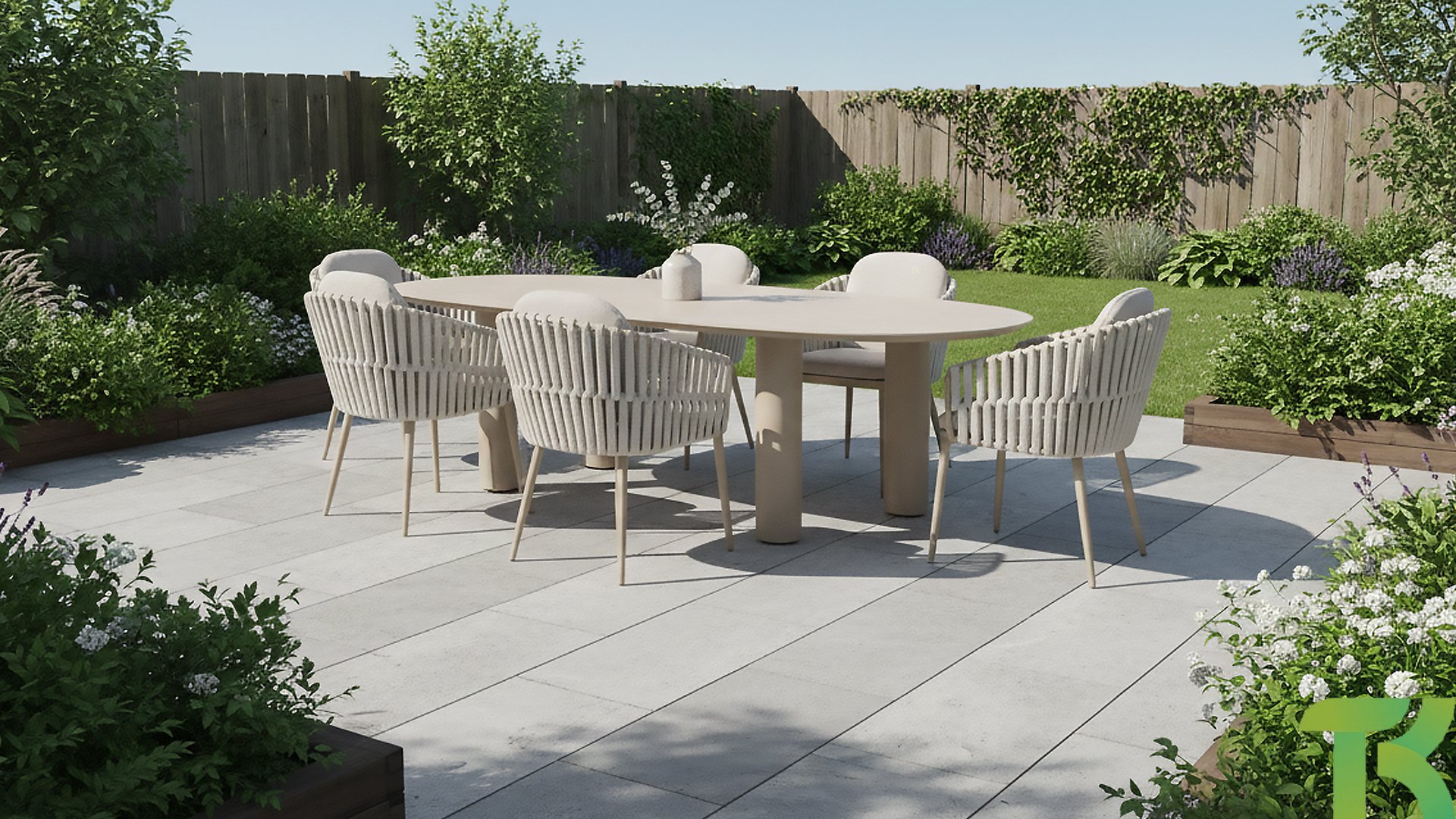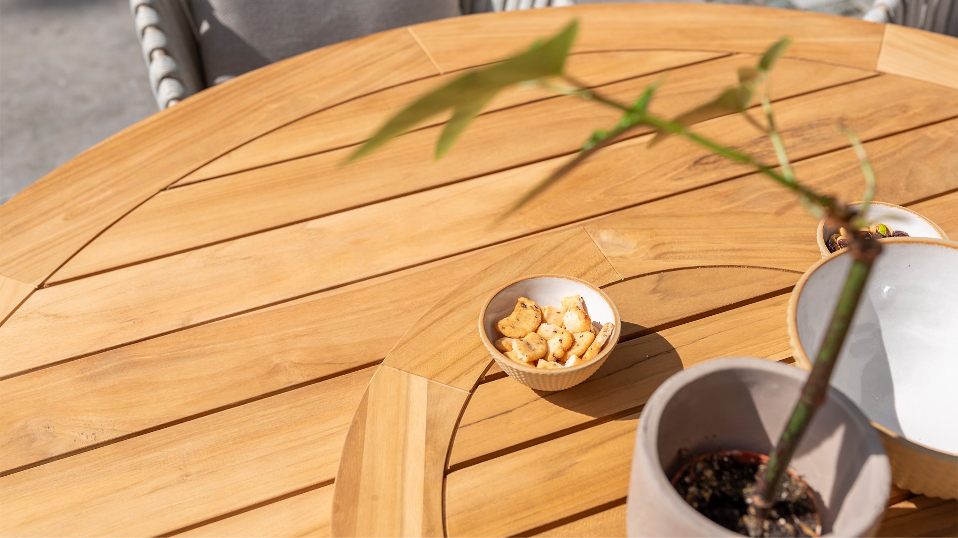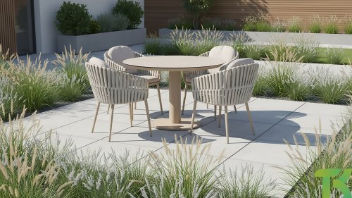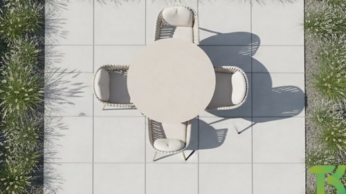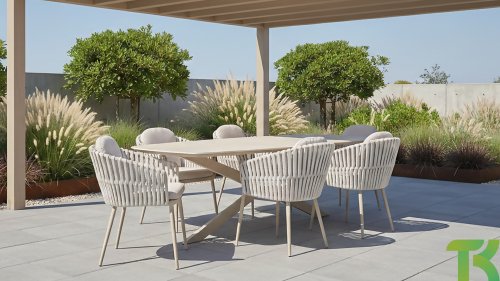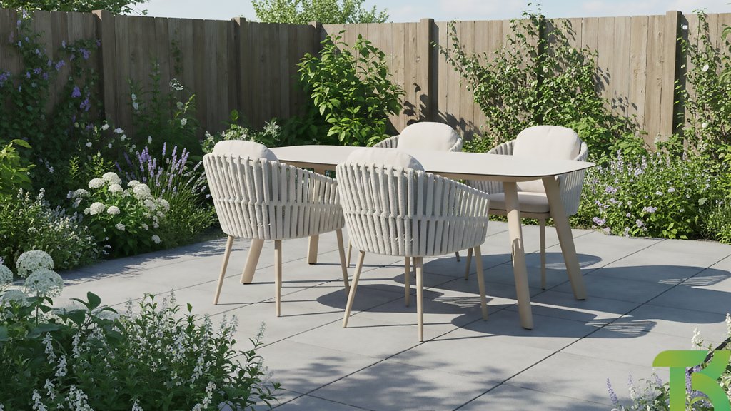 • Natürliches Aussehen: Die Latte-Seilpolsterung verleiht dem Stuhl ein natürliches, warmes und freundliches Aussehen, perfekt für eine entspannte Umgebung im Freien.