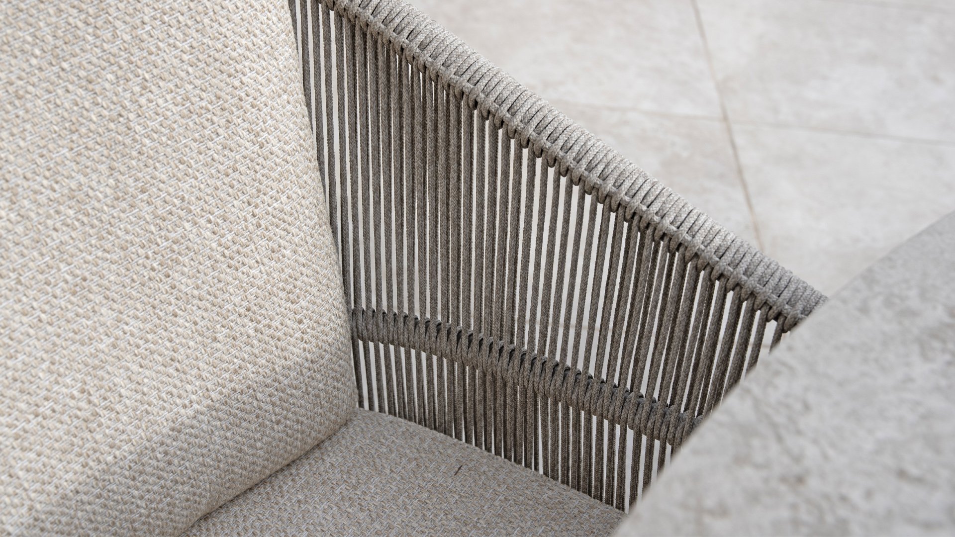 Inspiriert vom zeitlosen Charme Italiens zeichnet sich Florence durch sein dicht gewebtes Seilmuster und die raffinierte Trennung zwischen Rückenlehne und Sitzfläche aus, die einen modernen und eleganten Effekt erzeugen. Die bequemen Kissen bieten hervorragenden Sitzkomfort und machen dieses Esszimmerset perfekt für lange, entspannte Momente im Freien. Erhältlich in zwei eleganten Farben: Taste Florence Dining Terre – ein warmer, erdiger Farbton, der perfekt zu natürlichen Gartenelementen passt. Taste Florence Dining Latte – eine helle, elegante Farbe für einen frischen, sommerlichen Look.