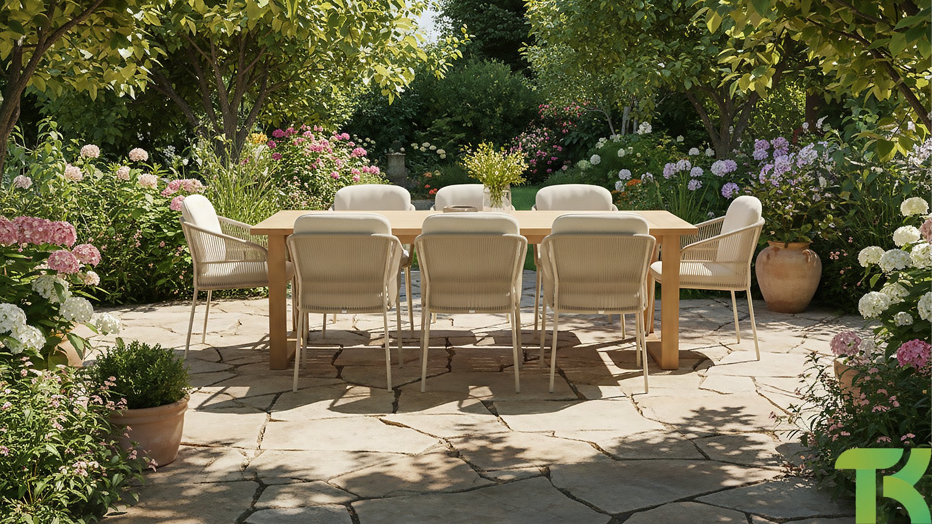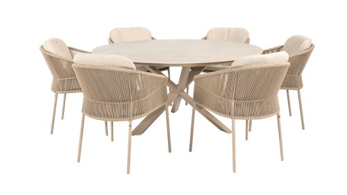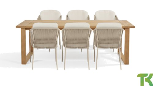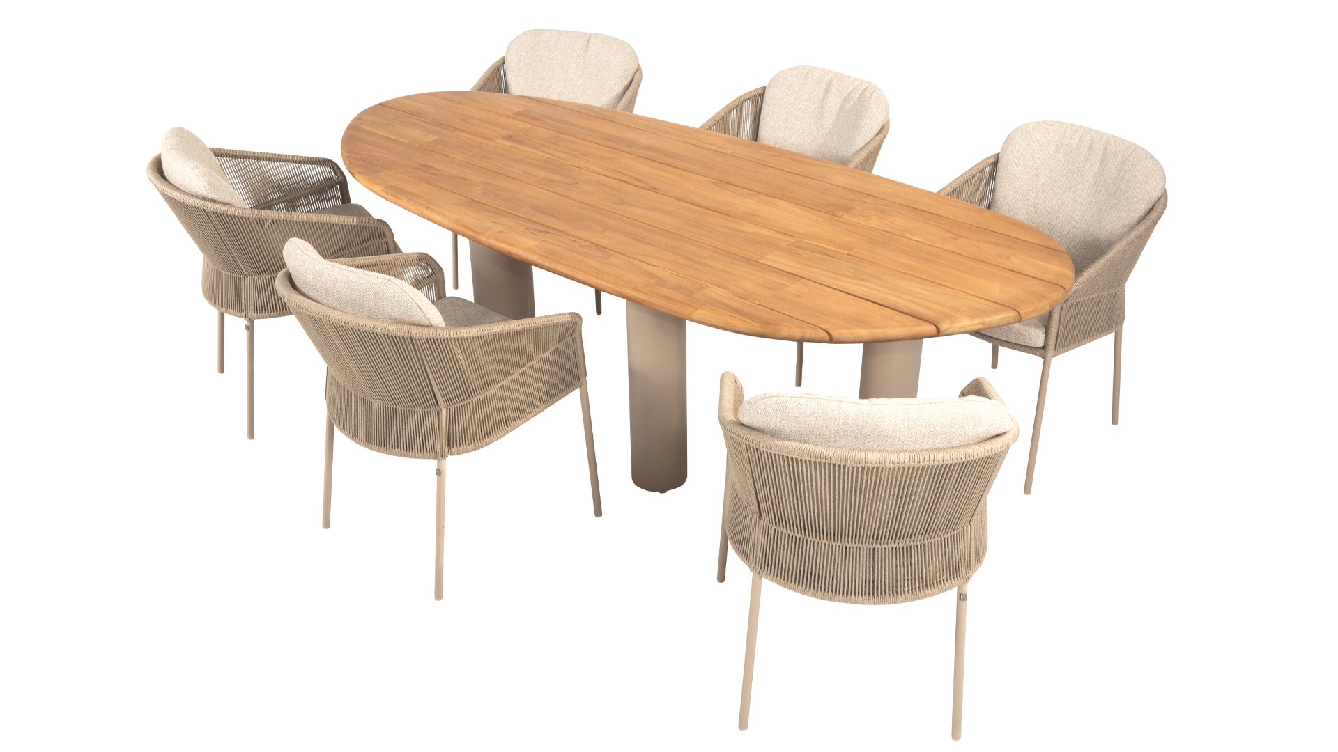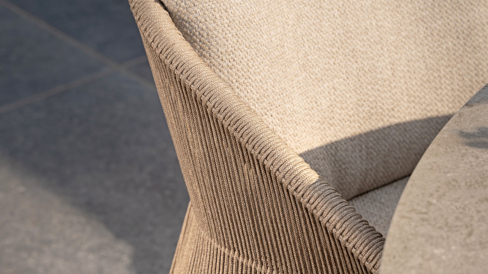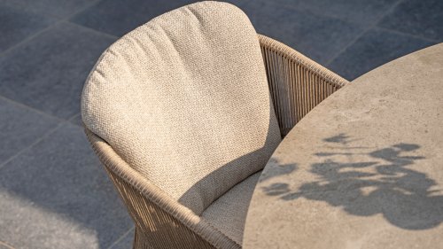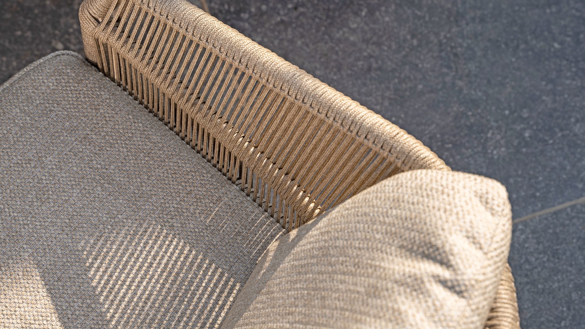 Inspiriert vom zeitlosen Charme Italiens zeichnet sich Florence durch sein dicht gewebtes Seilmuster und die raffinierte Trennung zwischen Rückenlehne und Sitzfläche aus, die einen modernen und eleganten Effekt erzeugen. Die bequemen Kissen bieten hervorragenden Sitzkomfort und machen dieses Esszimmerset perfekt für lange, entspannte Momente im Freien. Erhältlich in zwei eleganten Farben: Taste Florence Dining Terre – ein warmer, erdiger Farbton, der perfekt zu natürlichen Gartenelementen passt. Taste Florence Dining Latte – eine helle, elegante Farbe für einen frischen, sommerlichen Look.