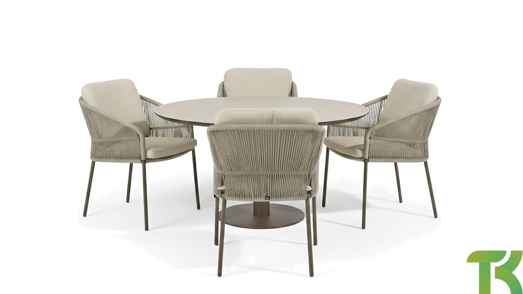 Inspiriert vom zeitlosen Charme Italiens zeichnet sich Florence durch sein dicht gewebtes Seilmuster und die raffinierte Trennung zwischen Rückenlehne und Sitzfläche aus, die einen modernen und eleganten Effekt erzeugen. Die bequemen Kissen bieten hervorragenden Sitzkomfort und machen dieses Esszimmerset perfekt für lange, entspannte Momente im Freien. Erhältlich in zwei eleganten Farben: Taste Florence Dining Terre – ein warmer, erdiger Farbton, der perfekt zu natürlichen Gartenelementen passt. Taste Florence Dining Latte – eine helle, elegante Farbe für einen frischen, sommerlichen Look.