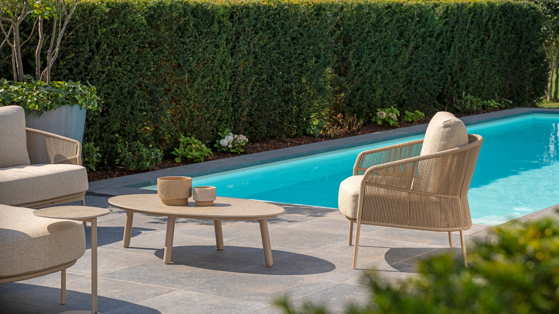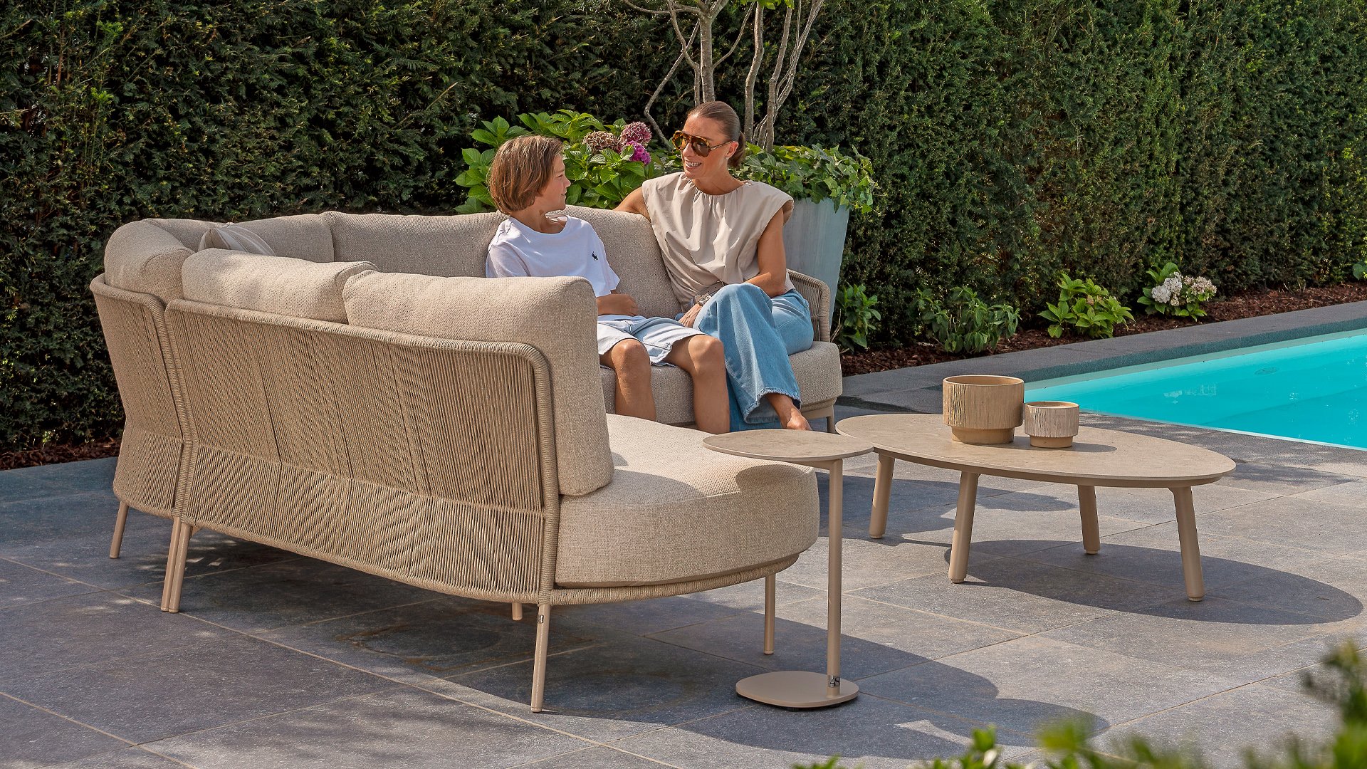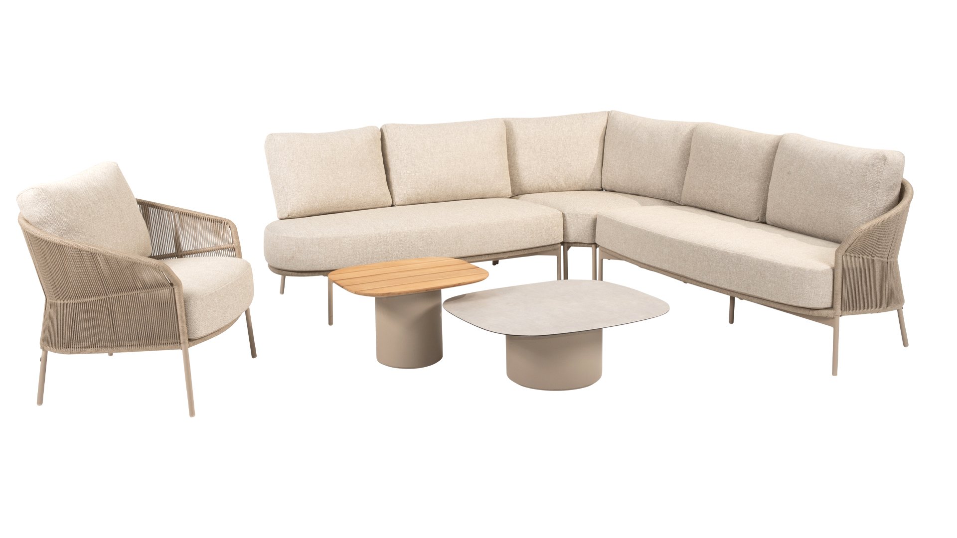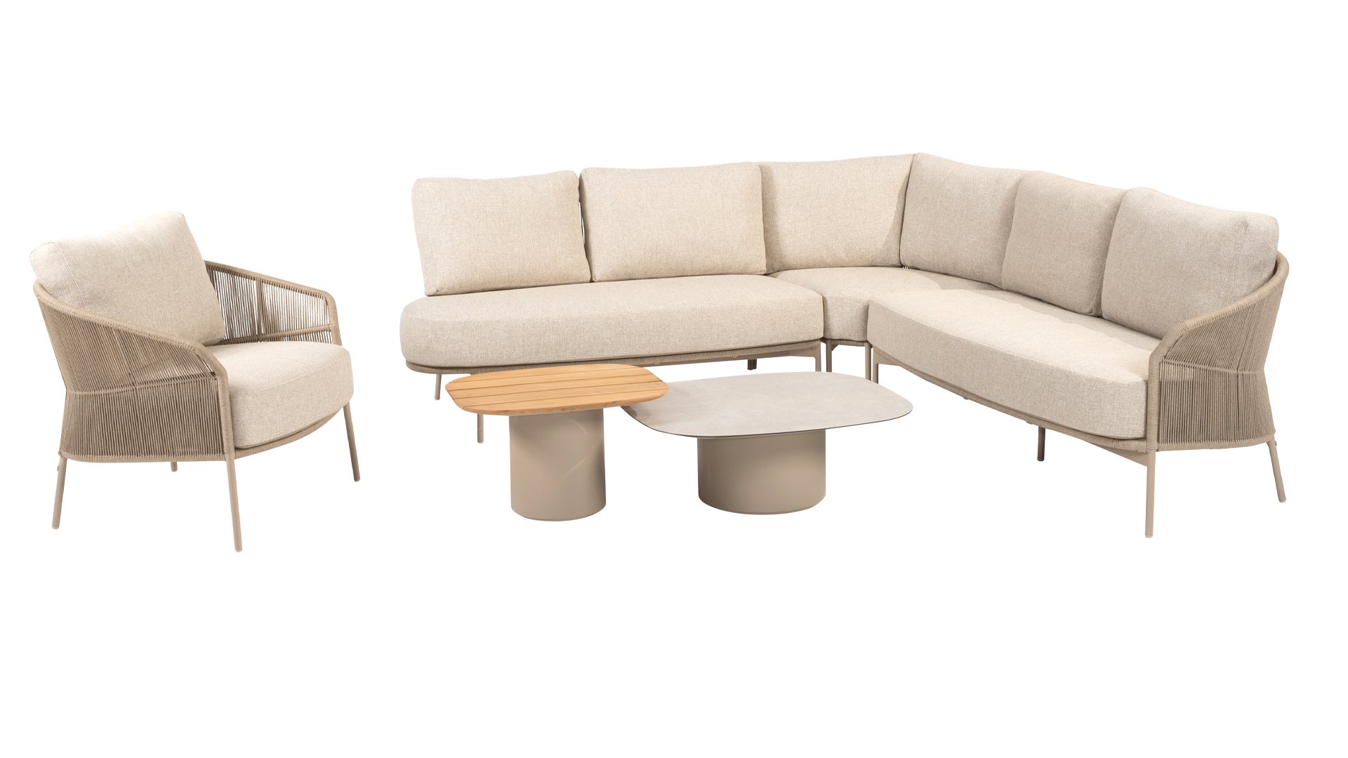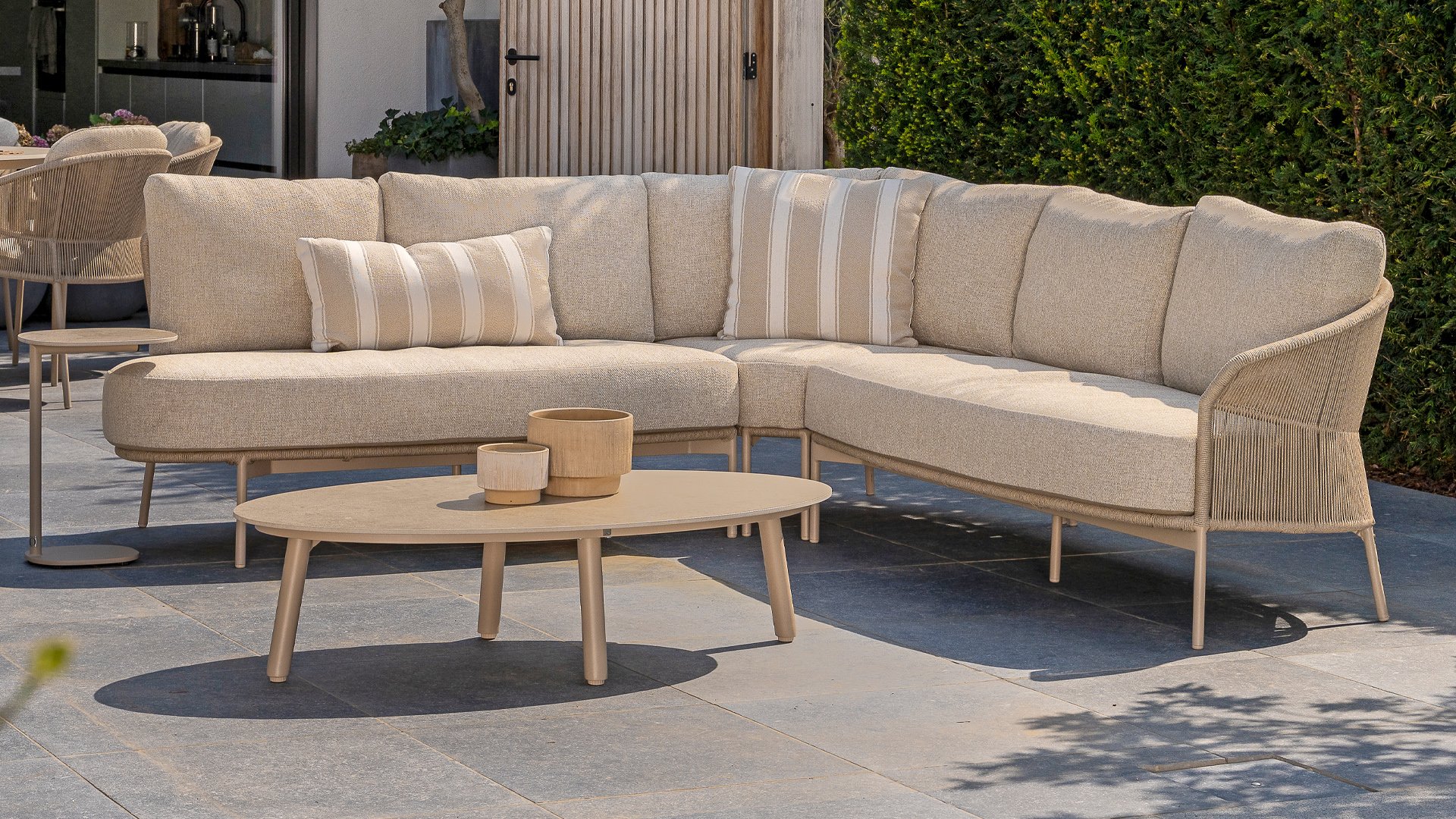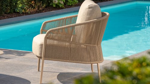 Verleihen Sie Ihrem Stil mit dem Florence Stil. Das wunderschöne Seildesign kombiniert mit luxuriösen Kissen sorgt für die perfekte Kombination aus Stil und Komfort. Genießen Sie ultimative Entspannung und entspannen Sie sich diesen Sommer. Erhältlich in zwei eleganten Farben: Taste Florence Terre Lounge – ein warmer, erdiger Farbton, der perfekt zu natürlichen Gartenelementen passt. Taste Florence Latte Lounge – eine helle, elegante Farbe für einen frischen, sommerlichen Look.