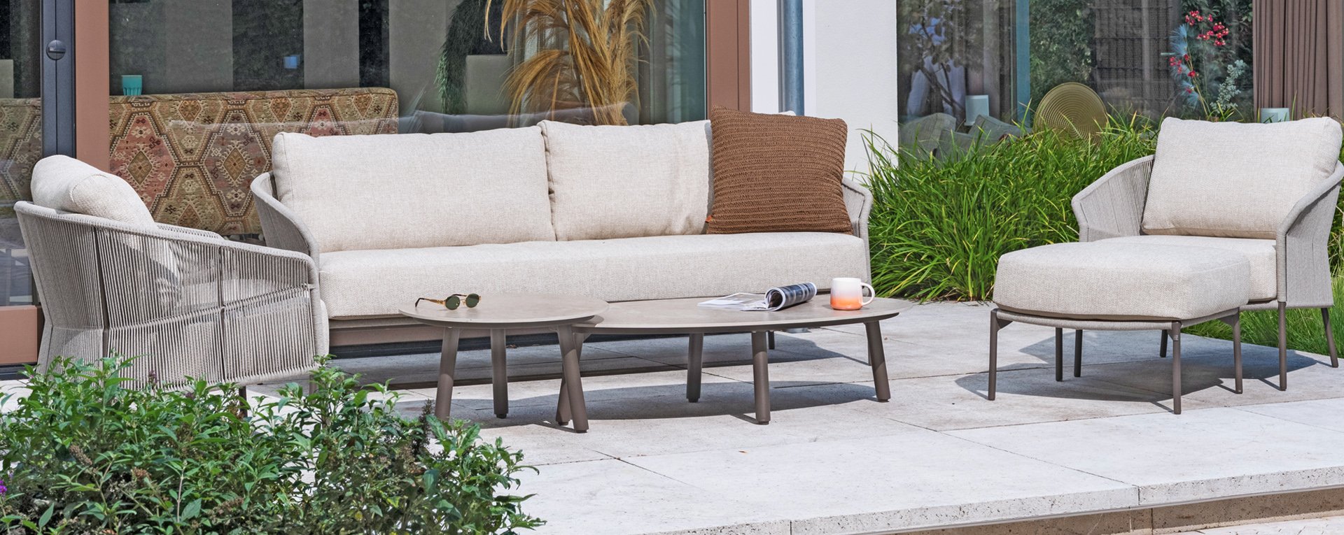 ⭐ Besuchen Sie unseren Showroom – Herzlich willkommen! Möchten Sie die Florence Lounge-Garnitur selbst sehen und ihren Komfort erleben? Dann besuchen Sie unseren Ausstellungsraum! Entdecken Sie das einzigartige Seilmuster, fühlen Sie die luxuriösen Kissen und lassen Sie sich von unseren Gartenmöbelexperten beraten.