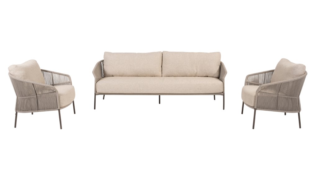 Verleihen Sie Ihrem Stil mit dem Florence Stil. Das wunderschöne Seildesign kombiniert mit luxuriösen Kissen sorgt für die perfekte Kombination aus Stil und Komfort. Genießen Sie ultimative Entspannung und entspannen Sie sich diesen Sommer. Erhältlich in zwei eleganten Farben: Taste Florence Terre Lounge – ein warmer, erdiger Farbton, der perfekt zu natürlichen Gartenelementen passt. Taste Florence Latte Lounge – eine helle, elegante Farbe für einen frischen, sommerlichen Look.