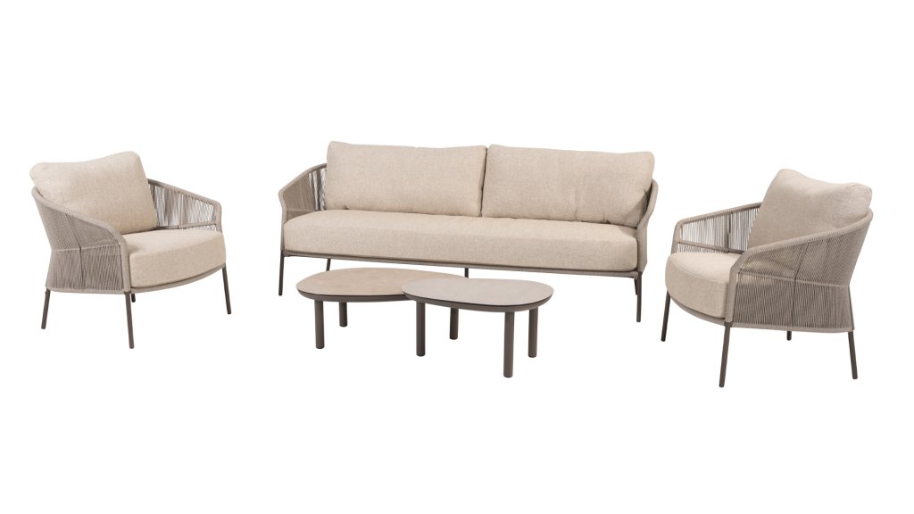 Verleihen Sie Ihrem Stil mit dem Florence Stil. Das wunderschöne Seildesign kombiniert mit luxuriösen Kissen sorgt für die perfekte Kombination aus Stil und Komfort. Genießen Sie ultimative Entspannung und entspannen Sie sich diesen Sommer. Erhältlich in zwei eleganten Farben: Taste Florence Terre Lounge – ein warmer, erdiger Farbton, der perfekt zu natürlichen Gartenelementen passt. Taste Florence Latte Lounge – eine helle, elegante Farbe für einen frischen, sommerlichen Look.