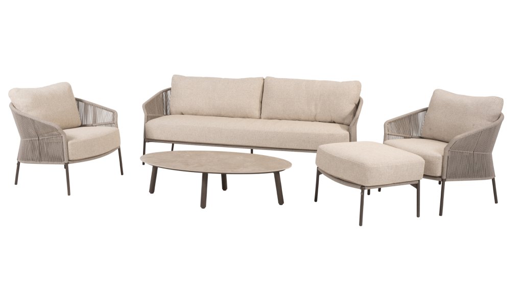 Verleihen Sie Ihrem Stil mit dem Florence Stil. Das wunderschöne Seildesign kombiniert mit luxuriösen Kissen sorgt für die perfekte Kombination aus Stil und Komfort. Genießen Sie ultimative Entspannung und entspannen Sie sich diesen Sommer. Erhältlich in zwei eleganten Farben: Taste Florence Terre Lounge – ein warmer, erdiger Farbton, der perfekt zu natürlichen Gartenelementen passt. Taste Florence Latte Lounge – eine helle, elegante Farbe für einen frischen, sommerlichen Look.