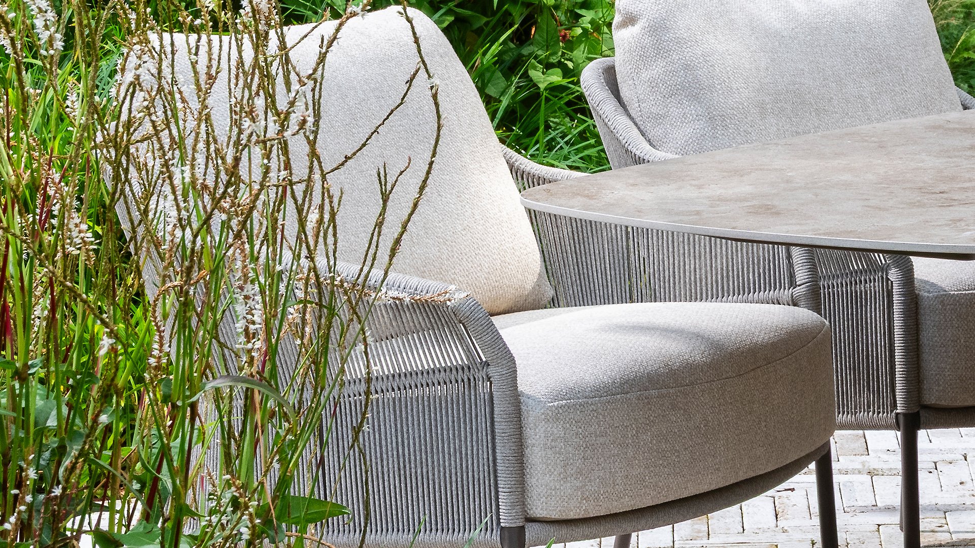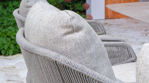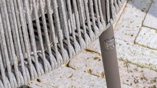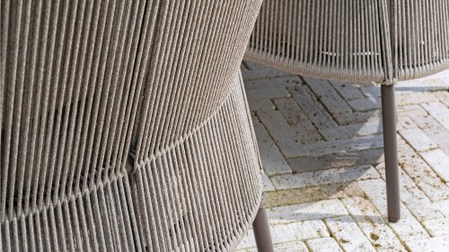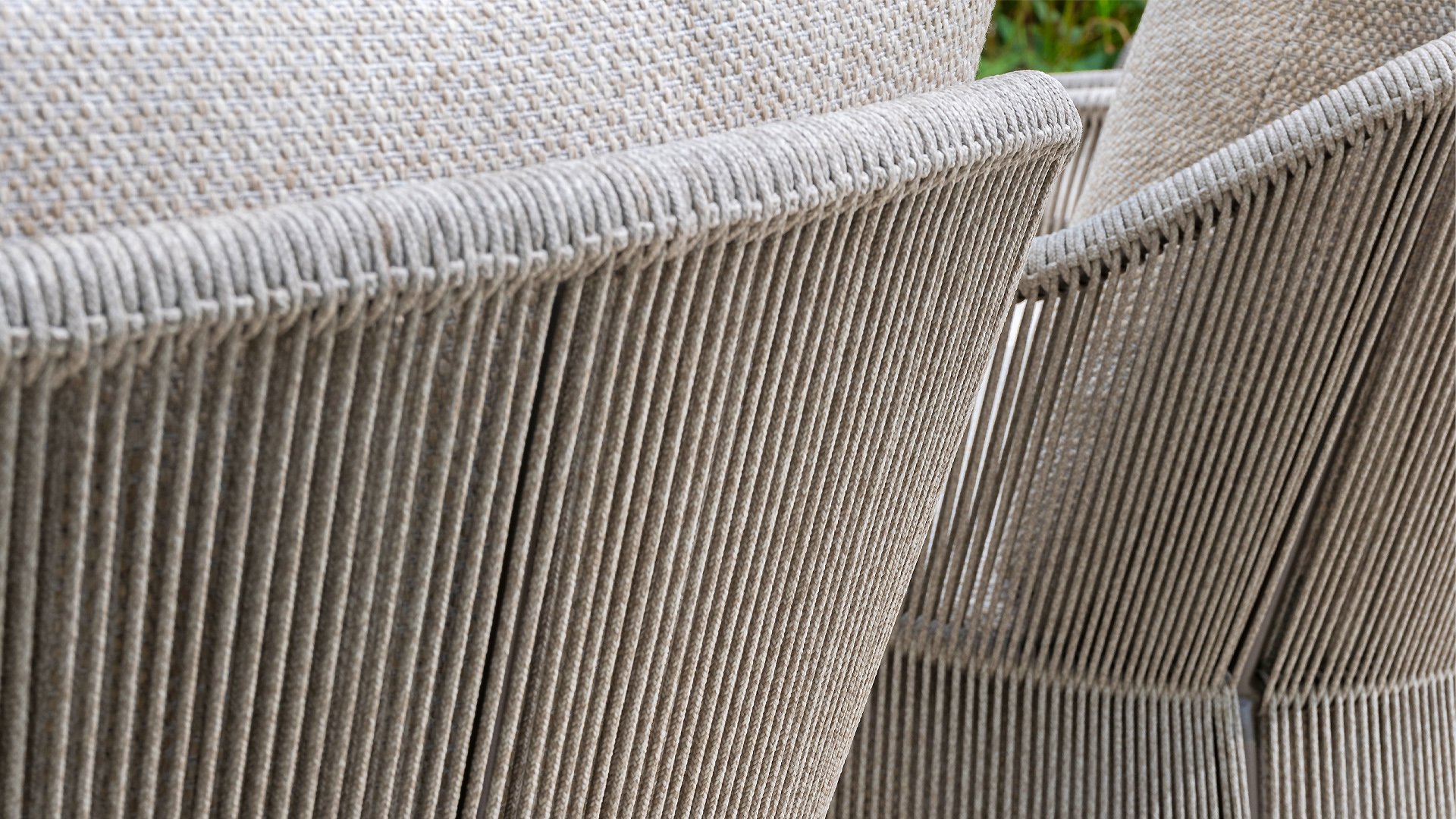 Der niedrige Esszimmerstuhl Florence vereint das Beste aus zwei Welten: die entspannte Atmosphäre eines Loungesessels mit der Funktionalität eines Esstisches. Das moderne Design besticht durch ein vertikales Seilmuster, das ein wunderschönes Linienspiel mit dem Rahmen erzeugt. Der Florence passt hervorragend zu einem unserer niedrigen Esstische für stilvolles und komfortables Wohnen im Freien.