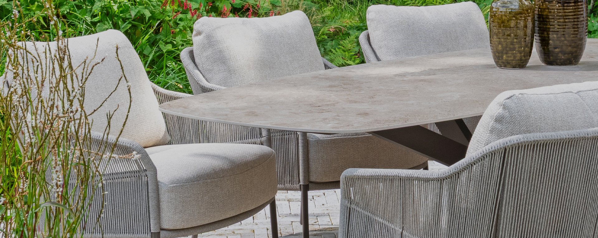 Keramik-Tische erfordern keine aufwändige Pflege. Wein-, Marmeladen- oder Fettflecke verschwinden im Handumdrehen mit Hilfe eines Schwamms oder einer Bürste und etwas Seifenwasser. Auch die im Haushalt verwendeten Säuren hinterlassen keine Spuren. Aber Keramik lässt sich nicht nur leicht reinigen, sondern ist auch ein hygienisches Material. Da es geschmacks- und geruchsneutral ist, können Sie Lebensmittel direkt auf die Keramik-Tischplatte legen. Bitte beachten Sie:Verwenden Sie zur Reinigung Ihrer 4 Seasons Outdoor Gartenmöbel keinen Hochdruckreiniger oder aggressive Reinigungs- oder Bleichmittel. Das kann die Beschichtung dauerhaft beschädigen. Auch können sich dadurch weiße Flecken bilden. Um Schäden vorzubeugen, seien Sie auch vorsichtig mit Feuer, heißen Gegenständen und hartnäckigen Flüssigkeiten wie Öl, Wein oder Ketchup. Um bleibende Flecken oder Verfärbungen zu vermeiden, decken Sie Ihre Möbel nicht dauerhaft ab und stellen auch keine Dekoration dauerhaft auf die Möbel.