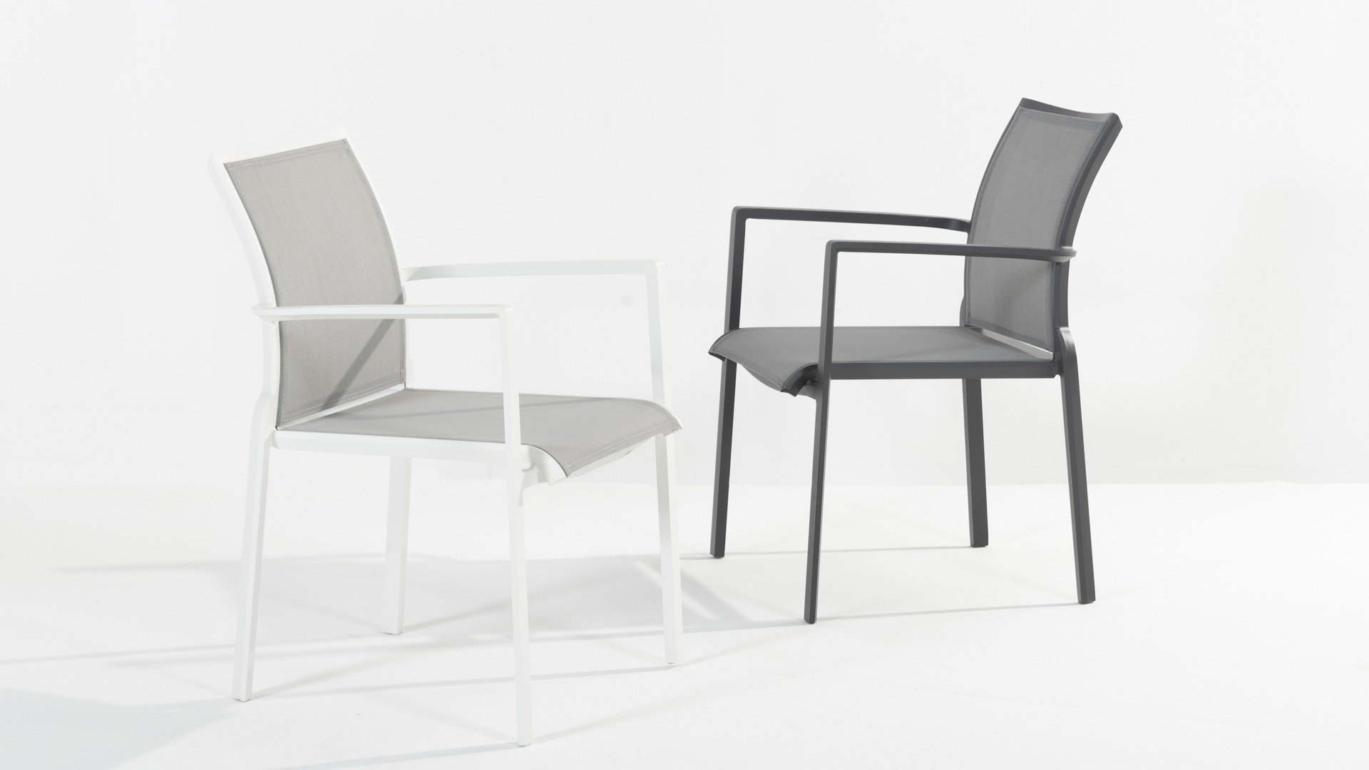 Der Taste by 4Seasons Outdoor Melbourne Stapelstuhl ist ein hochwertiger Stapelstuhl aus leichtem Aluminium. Der Stuhlsitz besteht aus Textilene, das ohne Kissen sehr bequem ist. Das Aluminium rostet nicht und das Textilene ist leicht zu reinigen. Der Esszimmerstuhl ist leicht und lässt sich daher bei Bedarf einfach stapeln und verstauen. Durch die Armlehnen aus Teakholz lässt sich dieser Esszimmerstuhl problemlos mit verschiedenen Tischen aus unserer Taste 4SO-Kollektion kombinieren.