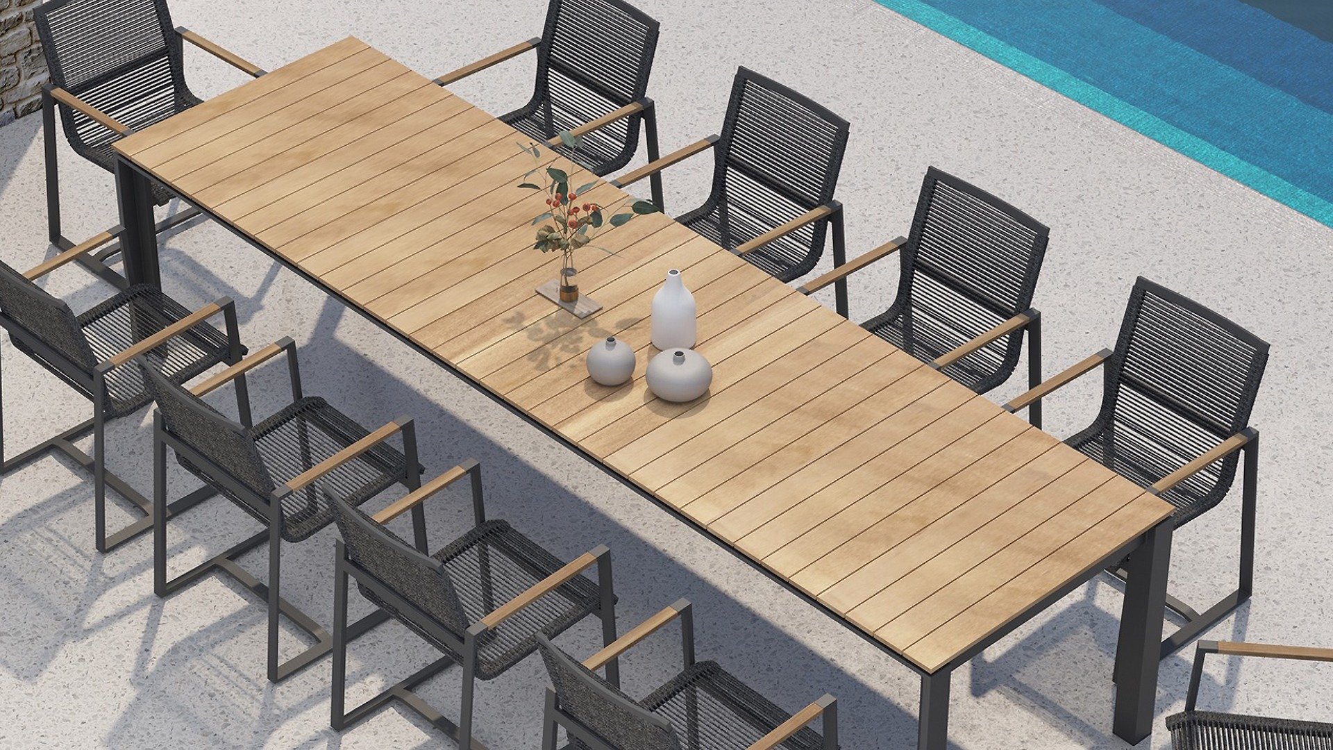 Optimum Aussiehtisch 220/280/340 Teak-Alu Anthrazit