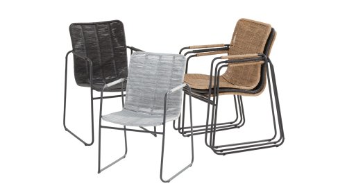 Der anthrazitfarbene Edelstahlrahmen wirkt aufgrund der dünnen runden Rohre stark, aber minimalistisch und industriell. Die abgerundeten Ecken geben ihm noch einen freundlichen Charakter. Das Material des Palma Stuhls ist einzigartig in unserer Kollektion. Es ist ein verdrillter Zopf. Es gibt dem Palma Stuhl ein natürliches seilartiges Aussehen. Sowohl der Sitz als auch die Rückenlehne bestehen aus diesem Material und die Armlehnen sind ebenfalls mit demselben Korbgeflecht umwickelt.