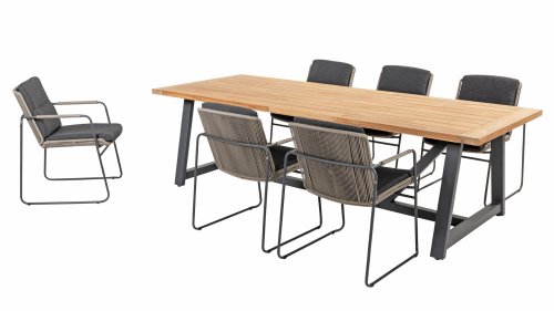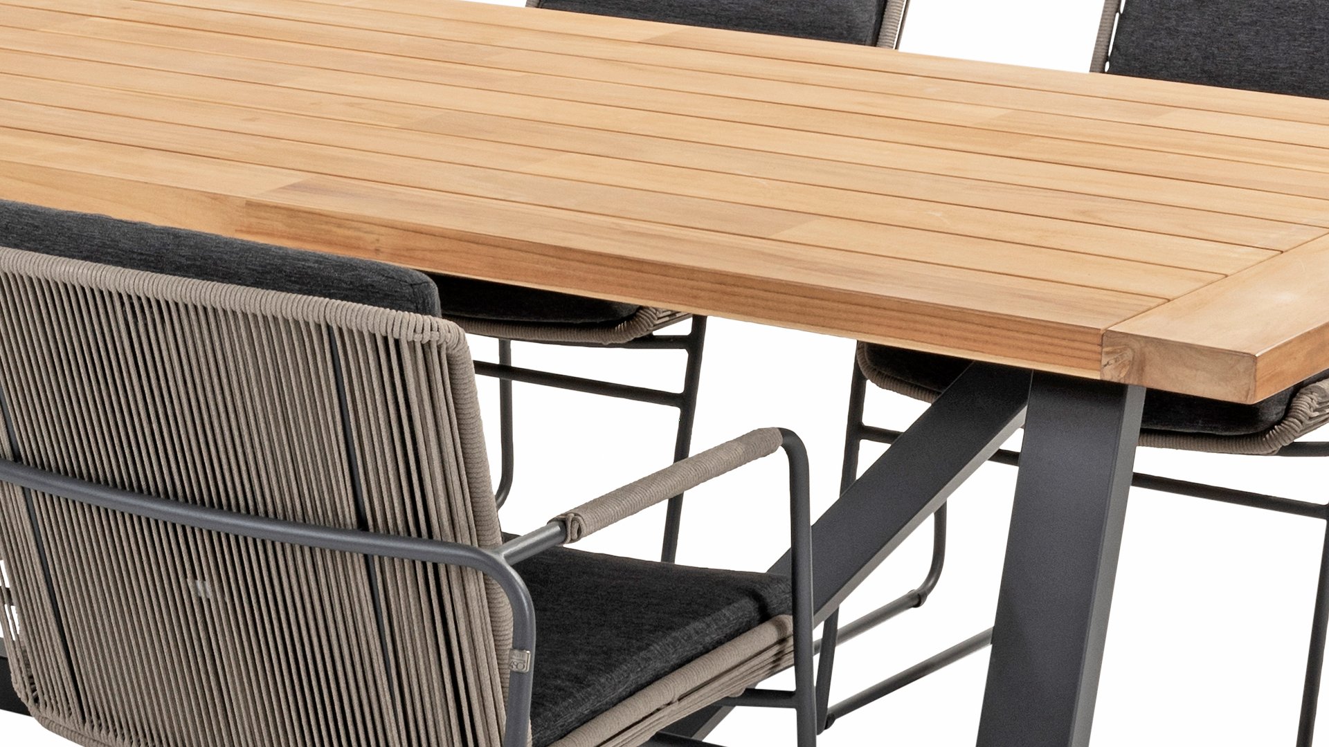 Gartenmöbel aus Teakholz bieten einen atemberaubenden Blick.Teakholz eignet sich besonders gut für den Einsatz im Außenbereich. Es ist resistent gegen Schädlinge und Pilze und widerstandsfähig gegen Sonne, Regen und Schnee. Mit der Zeit entwickelt das Teakholz eine silbergraue Patina. Gartenmöbel aus Teakholz bieten einen atemberaubenden Blick. Darüber hinaus ist es starkes Material und erfordert nur wenig Wartung. Wer die ursprüngliche Farbe des Teakholzes bevorzugt, kann durch regelmäßiges benutzen unser Pflegemittel ganz einfach das Vergrauen des Holzes verhindern.Darüber hinaus können Sie Teak mit grüner Seife reinigen. Durch Temperaturunterschiede und durch den Wechsel von Feuchtigkeit und Trockenheit können kleine Haarrisse entstehen. Es ist üblich, dass Man in dies Unvollkommenheiten findet, diese Unregelmäßigkeiten sind kennzeichnend für dieses Produkt. Diese Unregelmäßigkeiten können nie einen Anlass zu Reklamation, Garantie oder Claim formen. Es betrifft eine Unterschrift von Originalität! Wir gewähren Garantie auf alle Produktions- und Konstruktionsfehler. Die Wirkung von Teakholz ist nicht enthalten. Wenn Sie sich für Teakholz entscheiden, erwarten wir, dass Sie diese Eigenschaften zu schätzen wissen. Eventuell auftretende Haarrisse, Äste im Teakholz und raue Oberflächen im Laufe der Zeit fallen nicht unter unsere Garantie. Diese Eigenschaften verleihen dem Teakholz seinen eigenen Charakter und sind Teil der Optik. Seien Sie vorsichtig mit einem Blumentopf oder einer Vase auf Ihrem Gartentisch aus Teakholz, da dies zu hartnäckigen Kreisen oder Farbunterschieden führen kann.