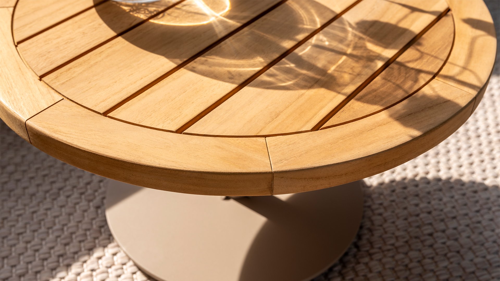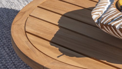 Entdecken Sie die Schönheit und Vielseitigkeit des 4 Seasons Outdoor Volta runden Couchtisches mit seiner wunderschönen Teakholzplatte und dem Edelstahlrahmen. Dieser Tisch verleiht Ihrem Außenbereich eine natürliche Eleganz und ist bis ins kleinste Detail durchdacht.