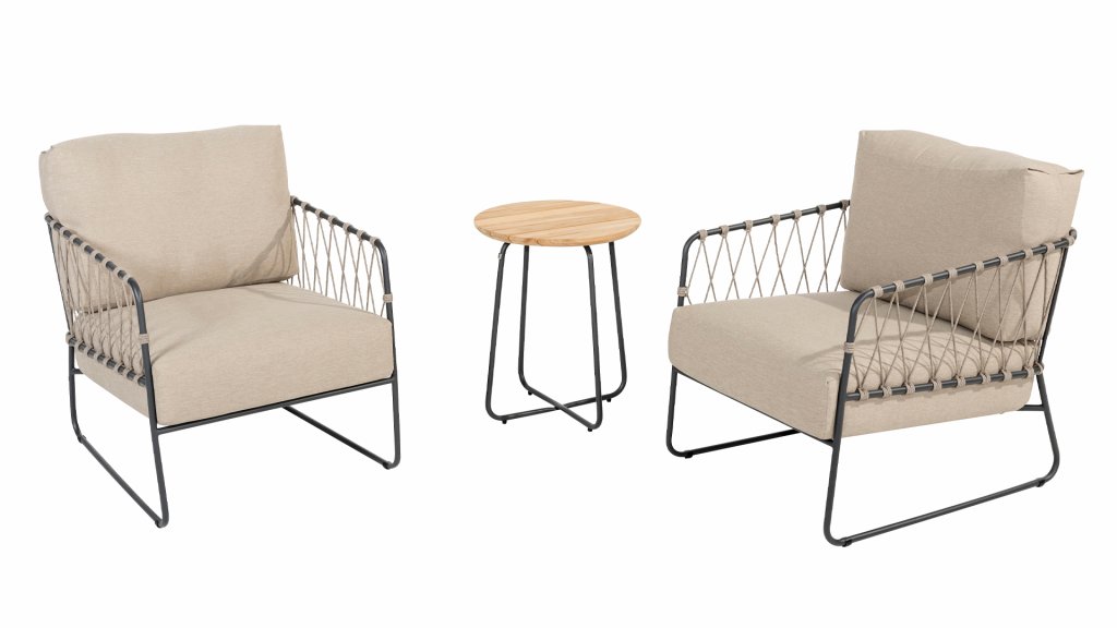 | Materialien Loungegruppe | Rope, Pulverbeschichtet Aluminium/Stahl |