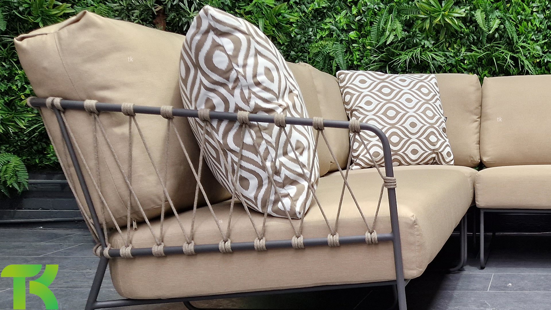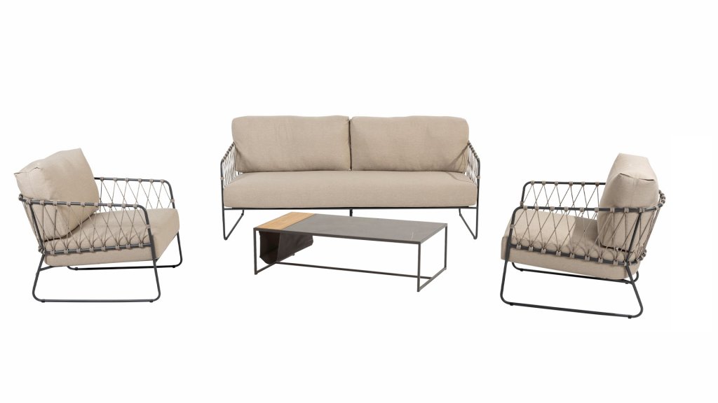 Die Prego-Lounge von Taste by 4Seasons besteht aus taupefarbenem Seil und verfügt über einen stilvollen anthrazitfarbenen Rahmen, der nicht nur langlebig ist, sondern Ihrem Außenbereich auch eine moderne Note verleiht. Mit den mitgelieferten Kissen können Sie stundenlang in Luxus und Komfort entspannen. Mit der Taste 4SO Prego Lounge genießen Sie die perfekte Kombination aus Ästhetik und Komfort. Verwandeln Sie Ihren Außenbereich mit dieser modernen Lounge in eine Oase der Entspannung.
