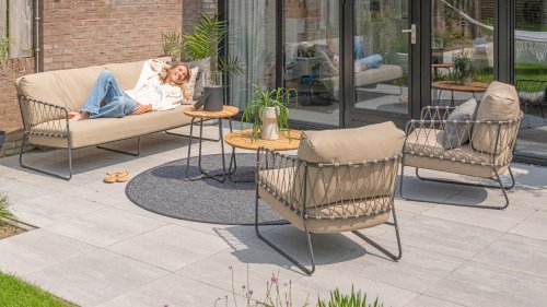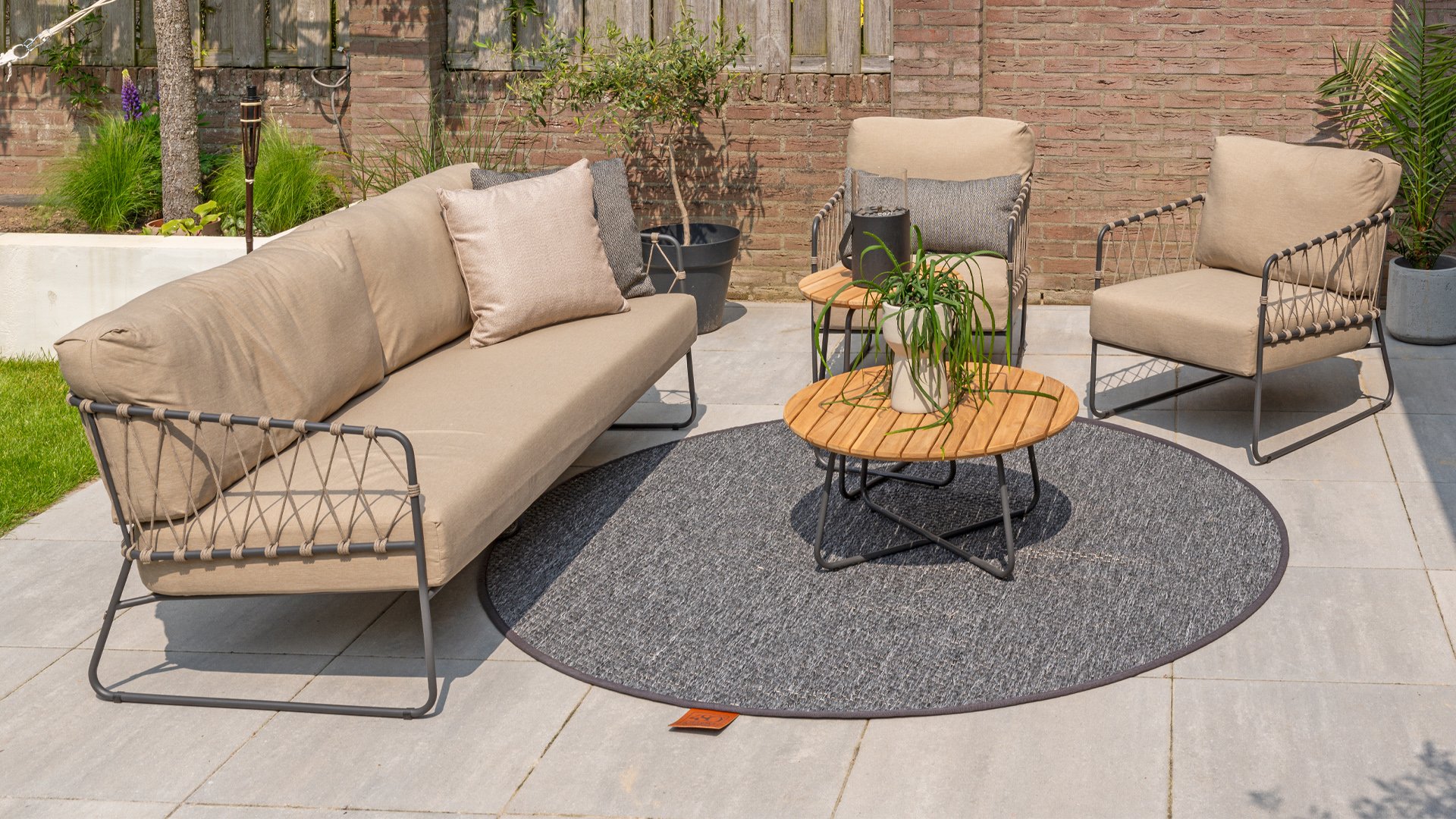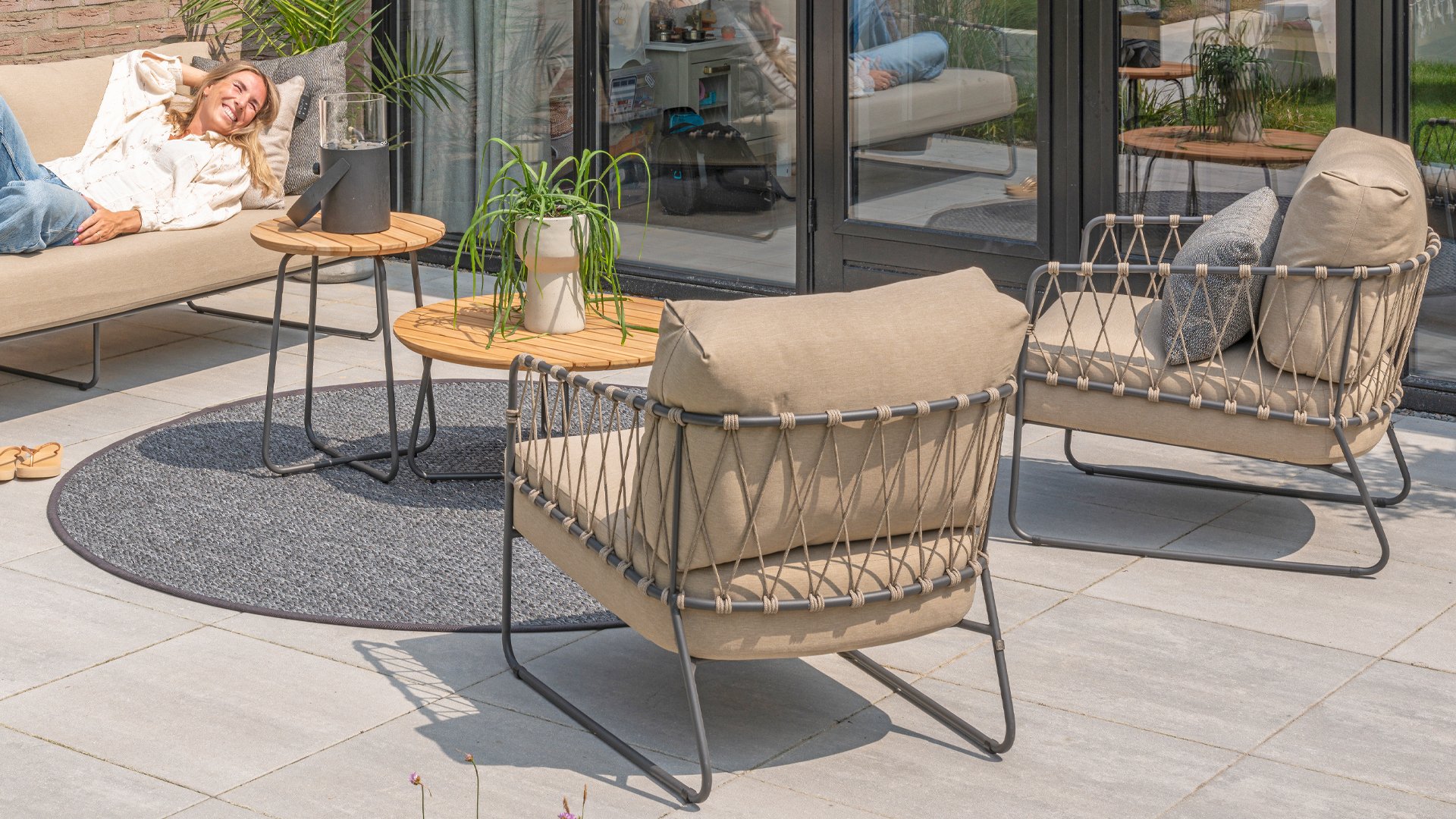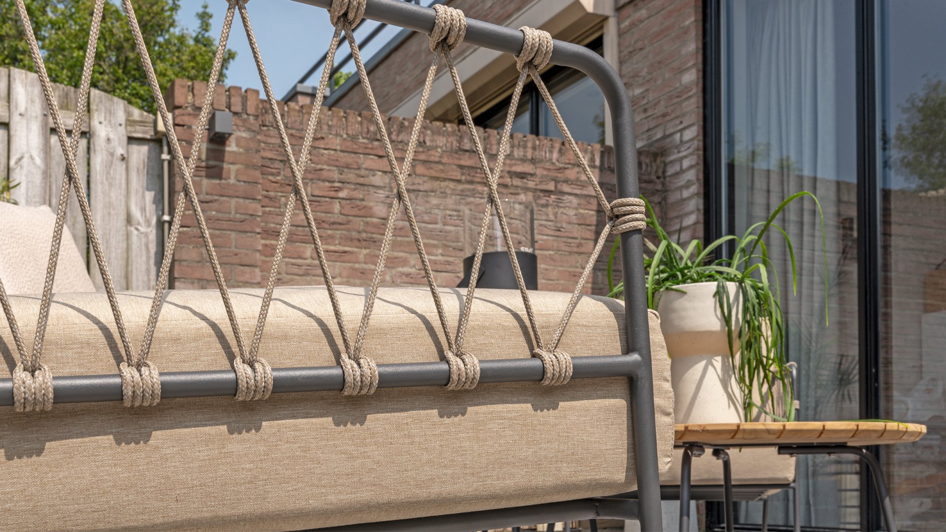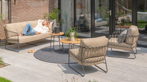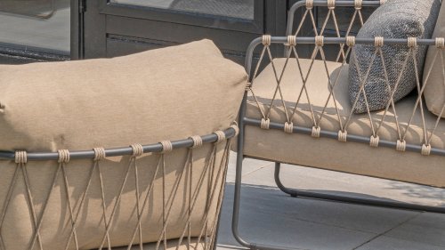 Die Prego-Lounge von Taste by 4Seasons besteht aus taupefarbenem Seil und verfügt über einen stilvollen anthrazitfarbenen Rahmen, der nicht nur langlebig ist, sondern Ihrem Außenbereich auch eine moderne Note verleiht. Mit den mitgelieferten Kissen können Sie stundenlang in Luxus und Komfort entspannen. Mit der Taste 4SO Prego Lounge genießen Sie die perfekte Kombination aus Ästhetik und Komfort. Verwandeln Sie Ihren Außenbereich mit dieser modernen Lounge in eine Oase der Entspannung.