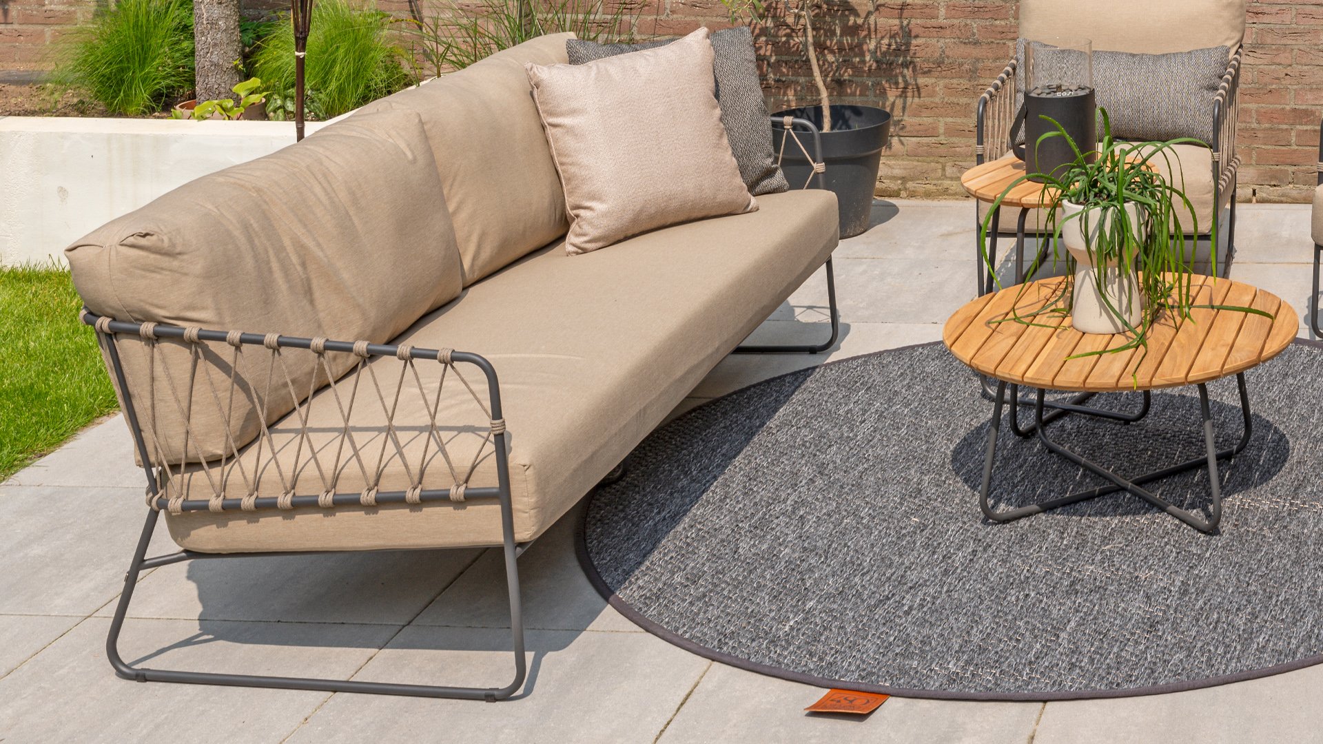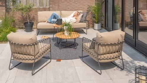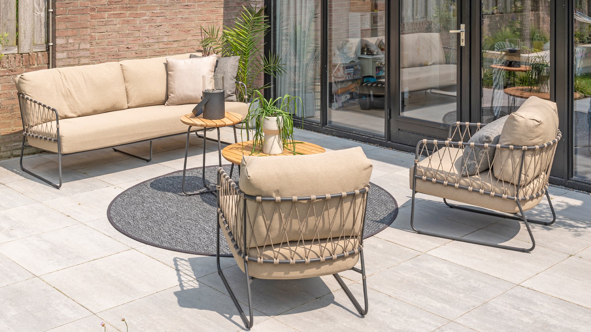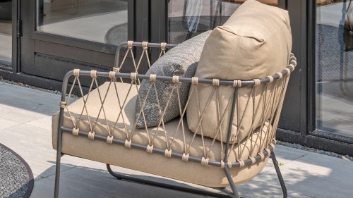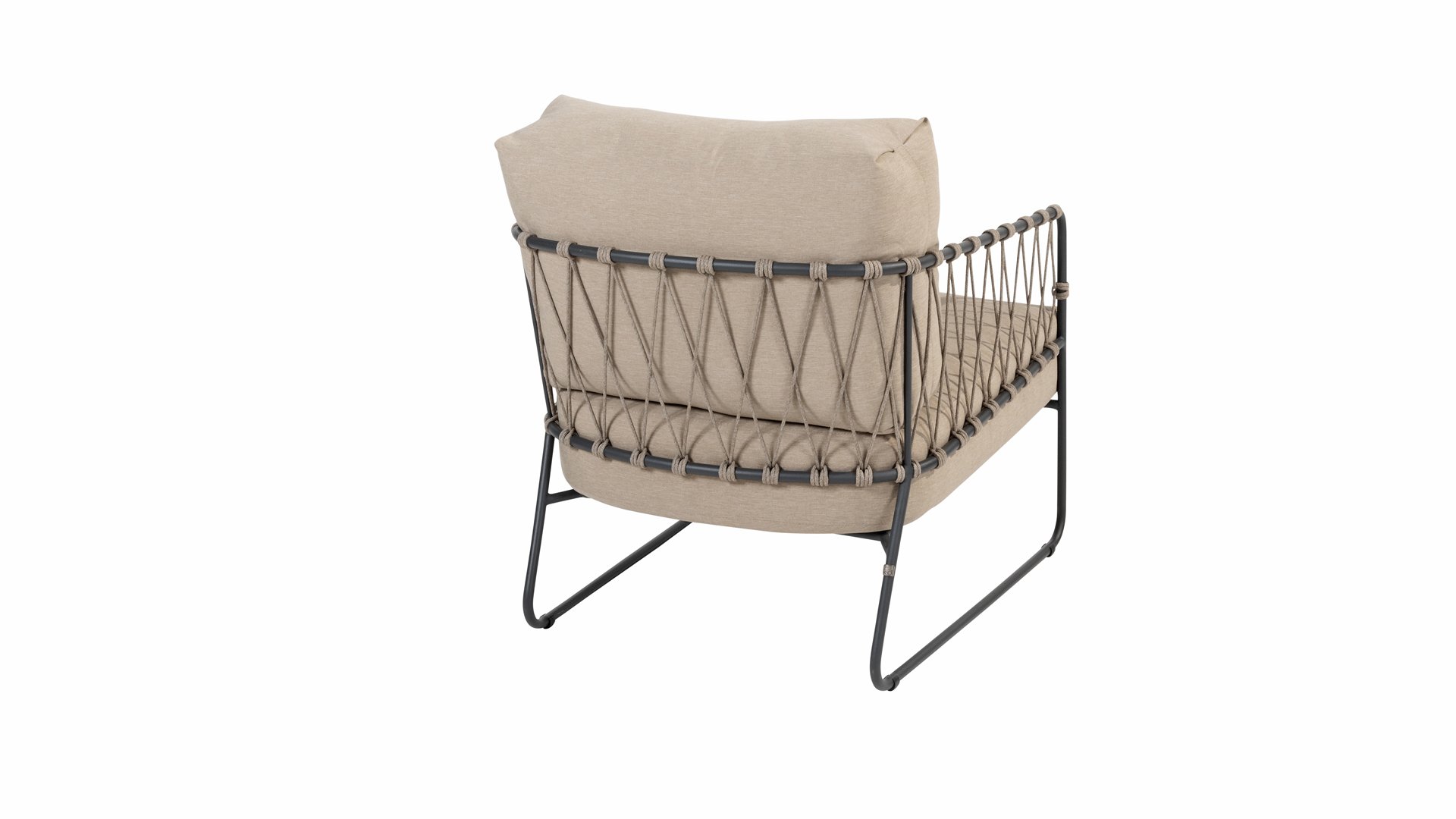 Die Prego-Lounge von Taste by 4Seasons besteht aus taupefarbenem Seil und verfügt über einen stilvollen anthrazitfarbenen Rahmen, der nicht nur langlebig ist, sondern Ihrem Außenbereich auch eine moderne Note verleiht. Mit den mitgelieferten Kissen können Sie stundenlang in Luxus und Komfort entspannen. Mit der Taste 4SO Prego Lounge genießen Sie die perfekte Kombination aus Ästhetik und Komfort. Verwandeln Sie Ihren Außenbereich mit dieser modernen Lounge in eine Oase der Entspannung.