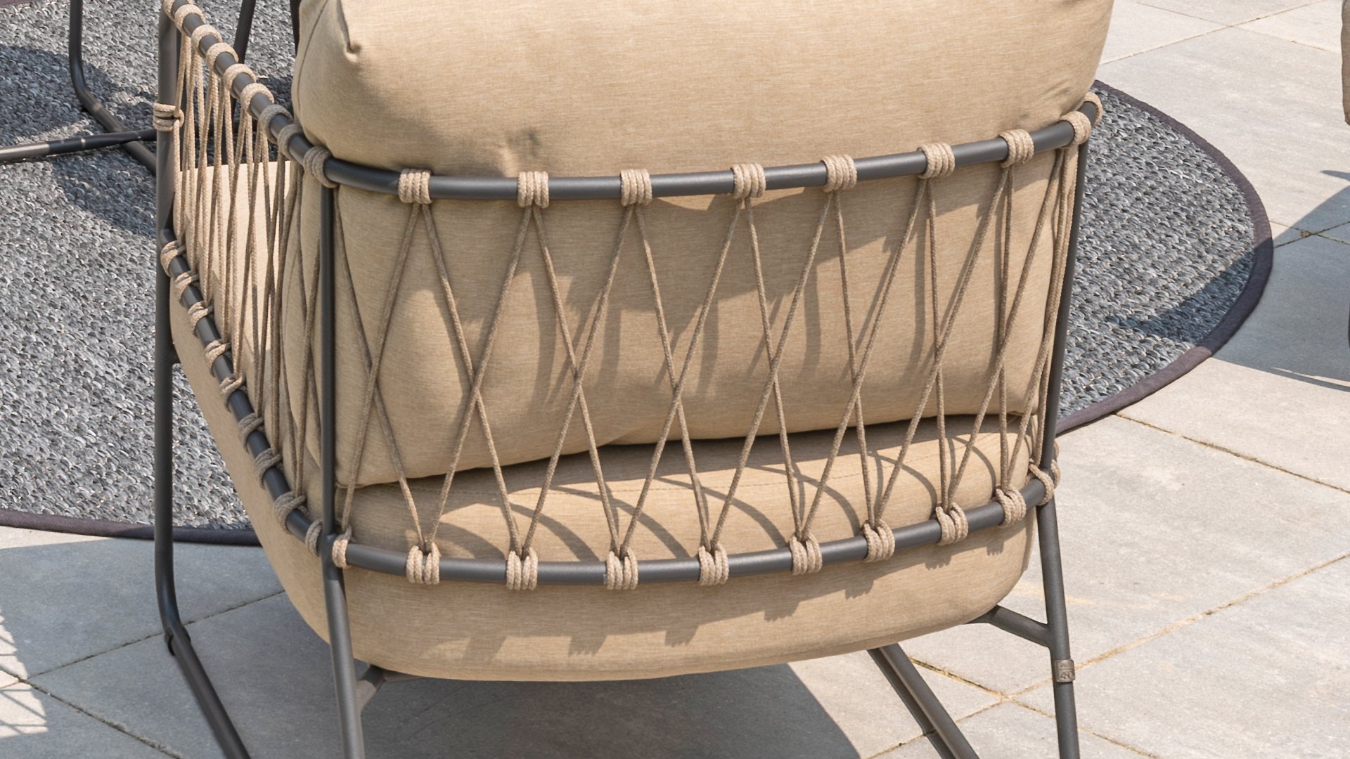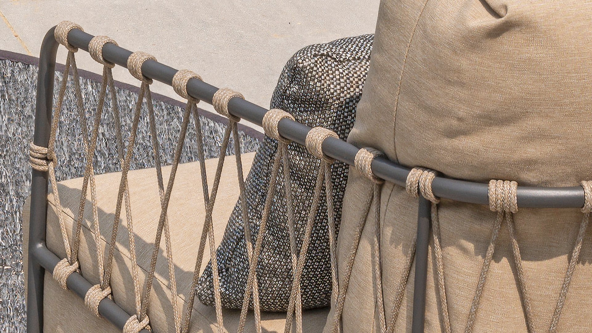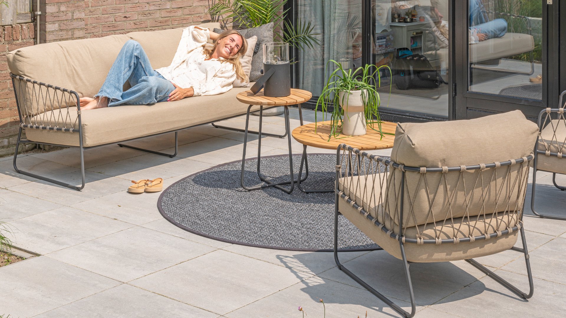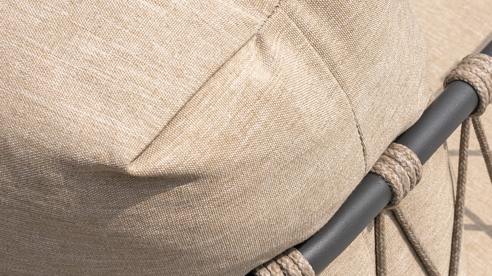 Die Prego-Lounge von Taste by 4Seasons besteht aus taupefarbenem Seil und verfügt über einen stilvollen anthrazitfarbenen Rahmen, der nicht nur langlebig ist, sondern Ihrem Außenbereich auch eine moderne Note verleiht. Mit den mitgelieferten Kissen können Sie stundenlang in Luxus und Komfort entspannen. Mit der Taste 4SO Prego Lounge genießen Sie die perfekte Kombination aus Ästhetik und Komfort. Verwandeln Sie Ihren Außenbereich mit dieser modernen Lounge in eine Oase der Entspannung.