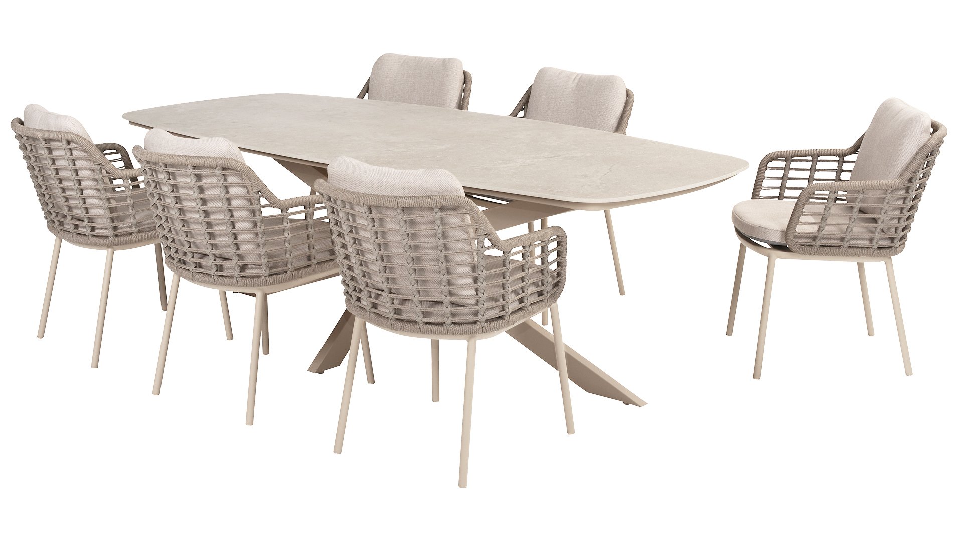 1 x Taste 4Seasons Prado Barrel Tisch Keramik-Alu Latte 240x105cm