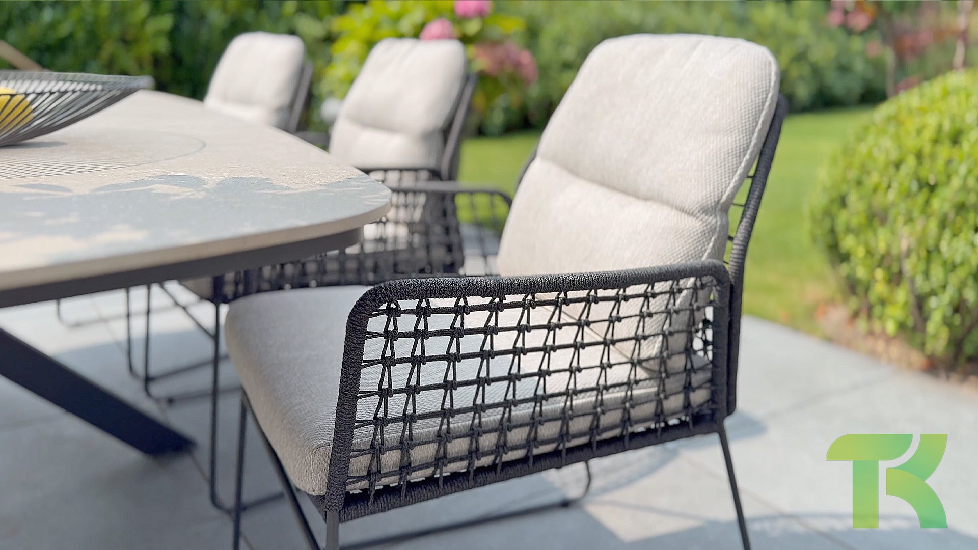 Der Rhodos Esszimmerstuhl von Taste 4SO ist eine echte Bereicherung für Ihren Außenbereich. Der Stuhl ist aus hochwertigem, anthrazitfarbenem Seil gefertigt und verfügt über ein stabiles Edelstahlgestell in der Farbe Anthrazit. Die verwendeten Materialien machen es widerstandsfähig gegen wechselnde Wetterbedingungen. Die mitgelieferten Kissen sorgen für zusätzlichen Komfort, sodass lange Abendessen mit dem Esszimmerstuhl Rhodos zum Erfolg werden. Die Rhodos-Serie ist eine komplette Kollektion innerhalb von Taste 4SO. Neben dem Esszimmerstuhl gibt es auch ein Lounge-Set mit Loungesessel und Sofa, sodass Sie weiterhin im gleichen Stil kombinieren können.