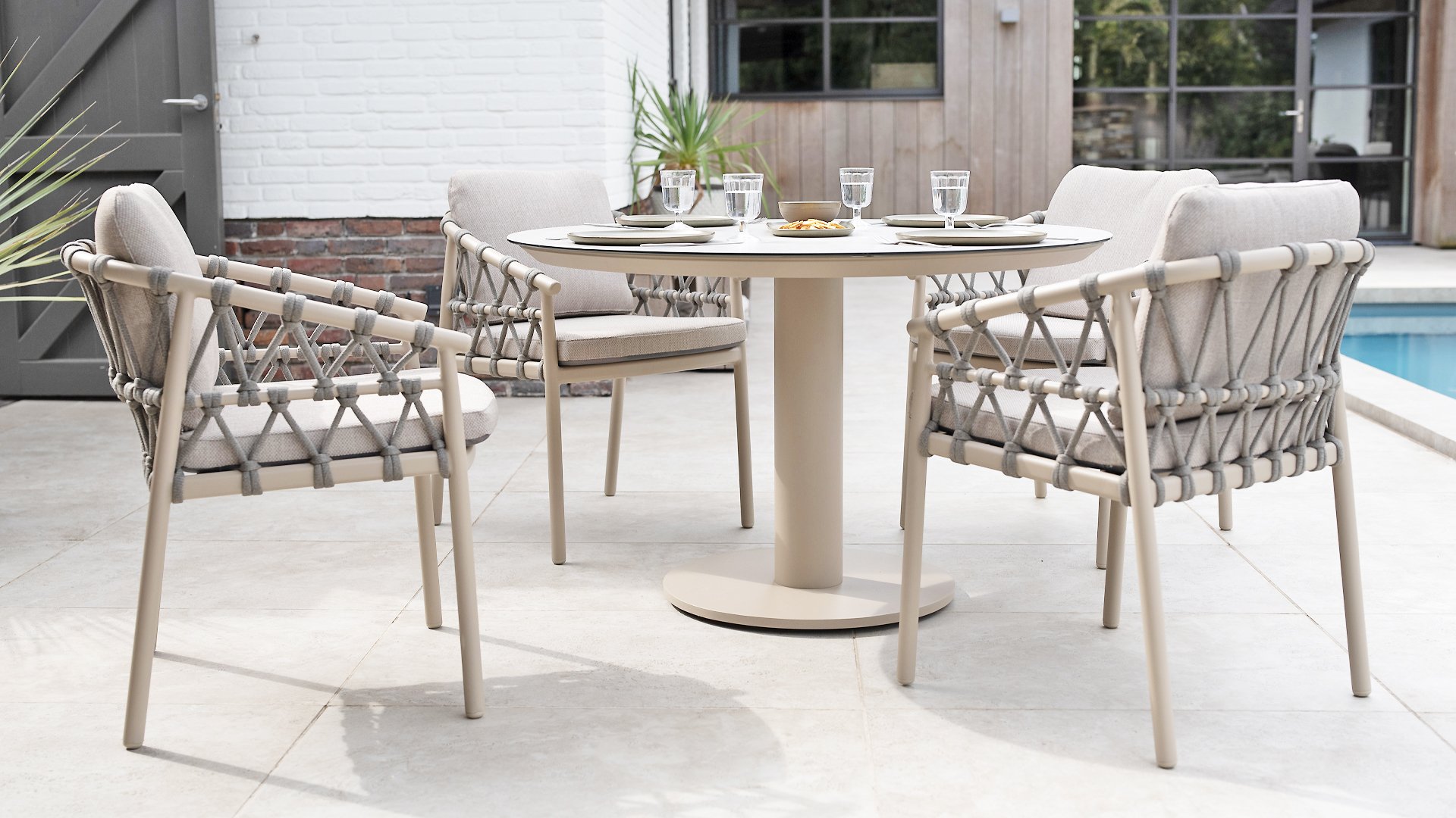 Die hochwertig bedruckte Keramikplatte sorgt nicht nur für eine luxuriöse Optik, sondern ist auch außergewöhnlich robust, kratzfest und pflegeleicht. Das zentrale Bein bietet maximale Beinfreiheit und verleiht dem Tisch einen modernen, luftigen Look. Taste by 4 Seasons Outdoor Sarah ist in zwei Ausführungen und zwei Farben erhältlich. Der Tisch ist in zwei Größen erhältlich: 120x75cm (Dining) und 130x69cm (Low Dining) in den Farben Latte und Terre. Entdecken Sie sie unten: