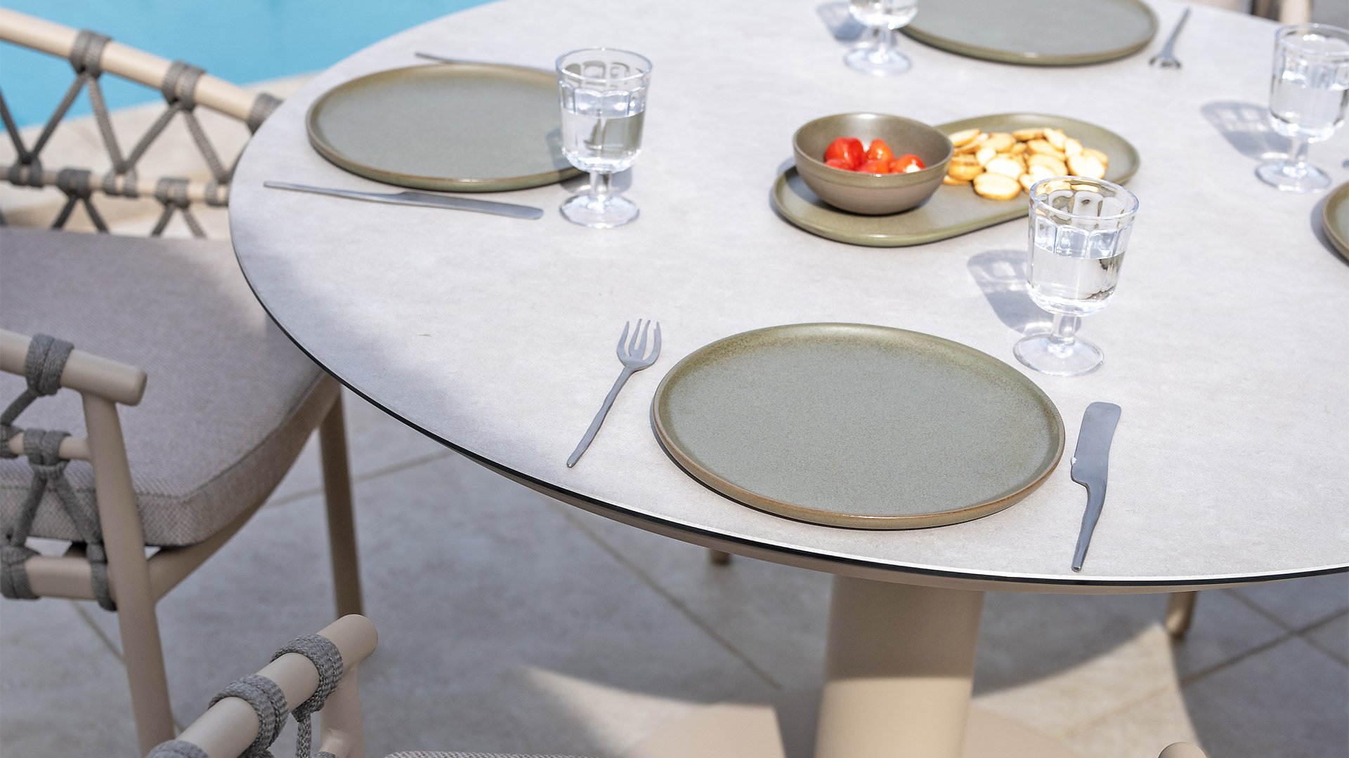 Lernen Sie Taste Sarah kennen, den runden Tisch, der Eleganz und Funktionalität mühelos vereint. Dieser schöne Tisch ist ein echter Hingucker in jedem Garten oder Essbereich. Sein rundes Design schafft eine gemütliche, einladende Atmosphäre, in der alle am Tisch in Kontakt bleiben.