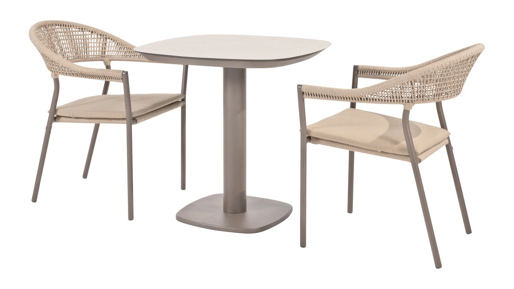 Die Terrassenmöbelserie Taste Sienna besticht durch ihren einzigartigen Stil, der durch moderne Seilelemente noch unterstrichen wird! Die Schönheit liegt im Detail. Die Rückenlehne der Sienna-Essgruppe von Taste by 4Seasons ist aus Seil geflochten und bietet so eine stabile und zugleich bequeme Sitzfläche. Das Gestell erzeugt ein verspieltes und minimalistisches Zusammenspiel fließender Linien und bildet eine solide Basis. Ein wahrer Augenschmaus! Die Sienna ist in den Farben Latte, Terre und Anthrazit erhältlich.