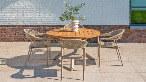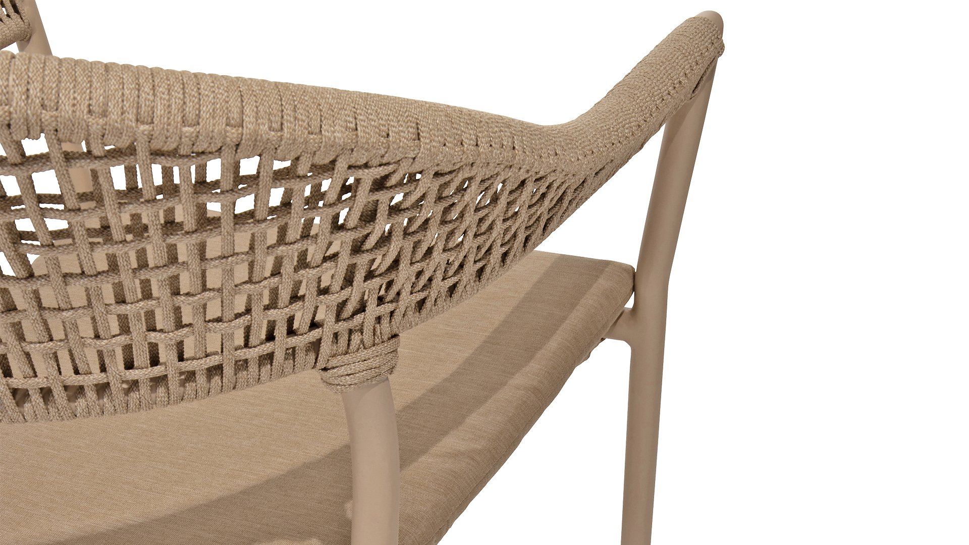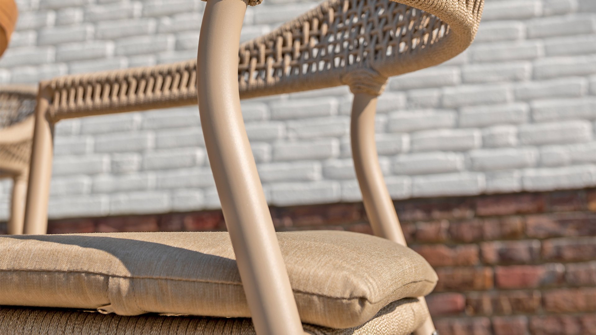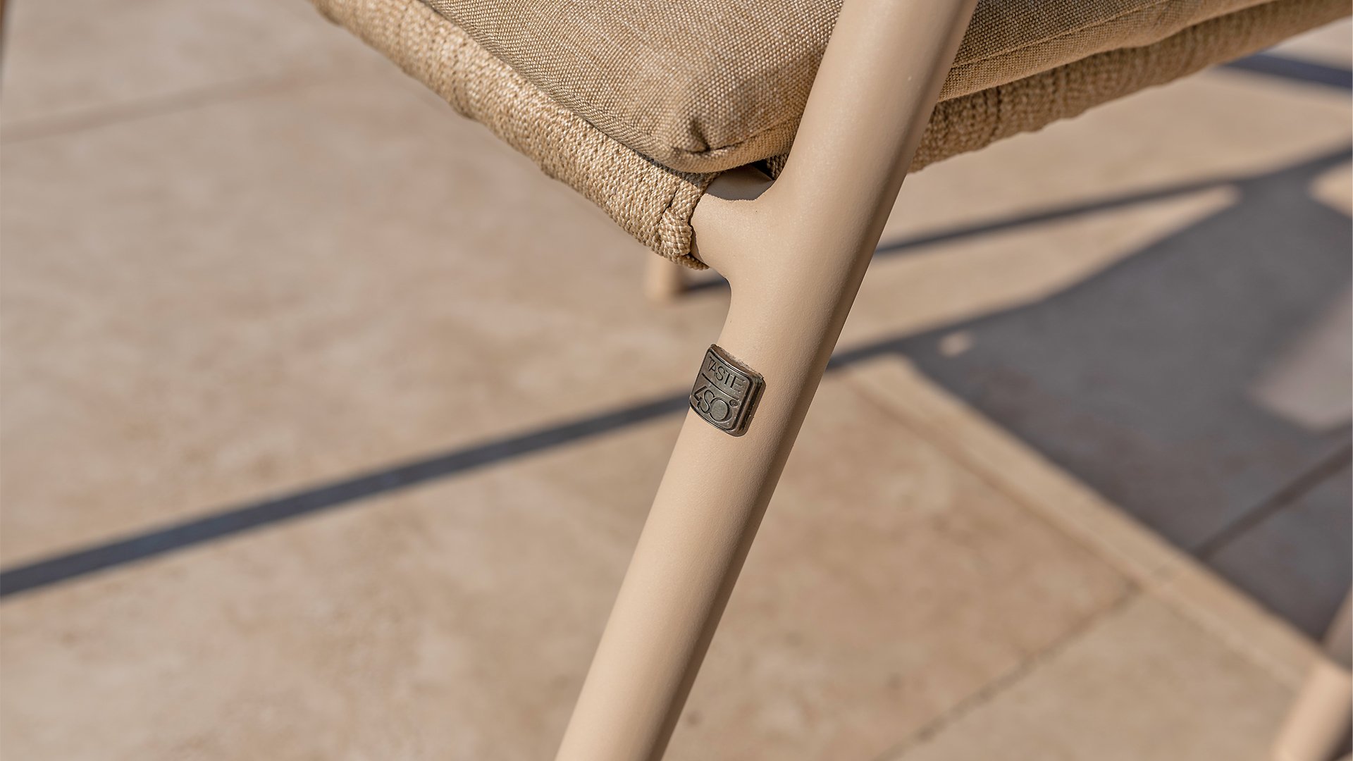 Die Terrassenmöbelserie Taste Sienna besticht durch ihren einzigartigen Stil, der durch moderne Seilelemente noch unterstrichen wird! Die Schönheit liegt im Detail. Die Rückenlehne der Sienna-Essgruppe von Taste by 4Seasons ist aus Seil geflochten und bietet so eine stabile und zugleich bequeme Sitzfläche. Das Gestell erzeugt ein verspieltes und minimalistisches Zusammenspiel fließender Linien und bildet eine solide Basis. Ein wahrer Augenschmaus! Die Sienna ist in den Farben Latte, Terre und Anthrazit erhältlich.