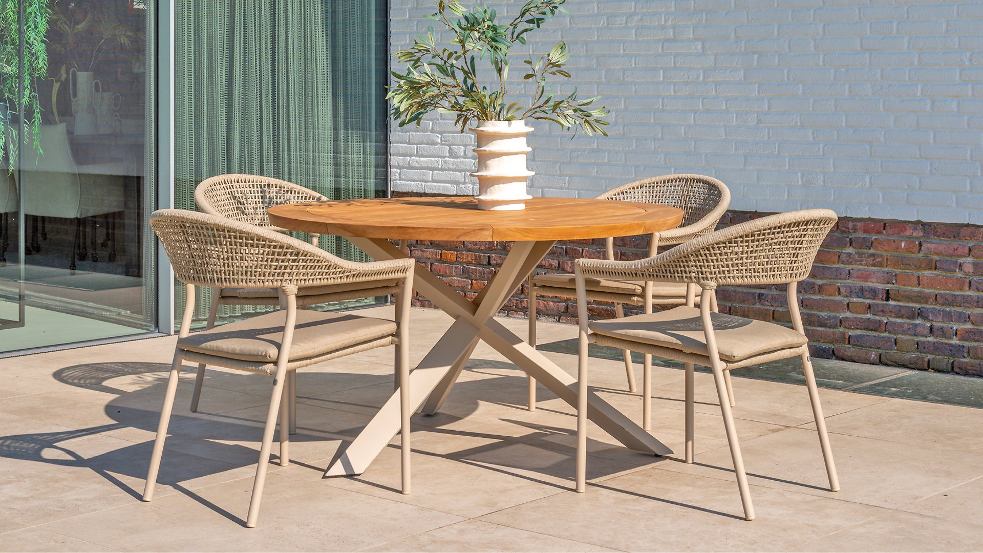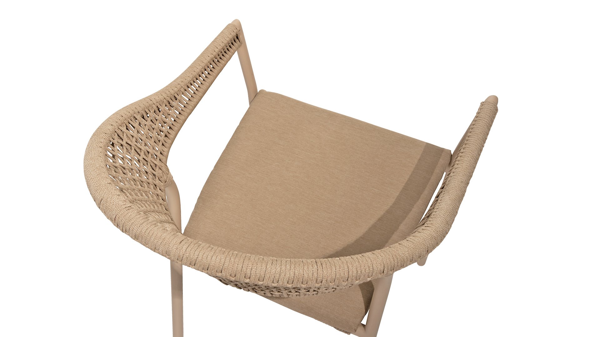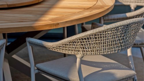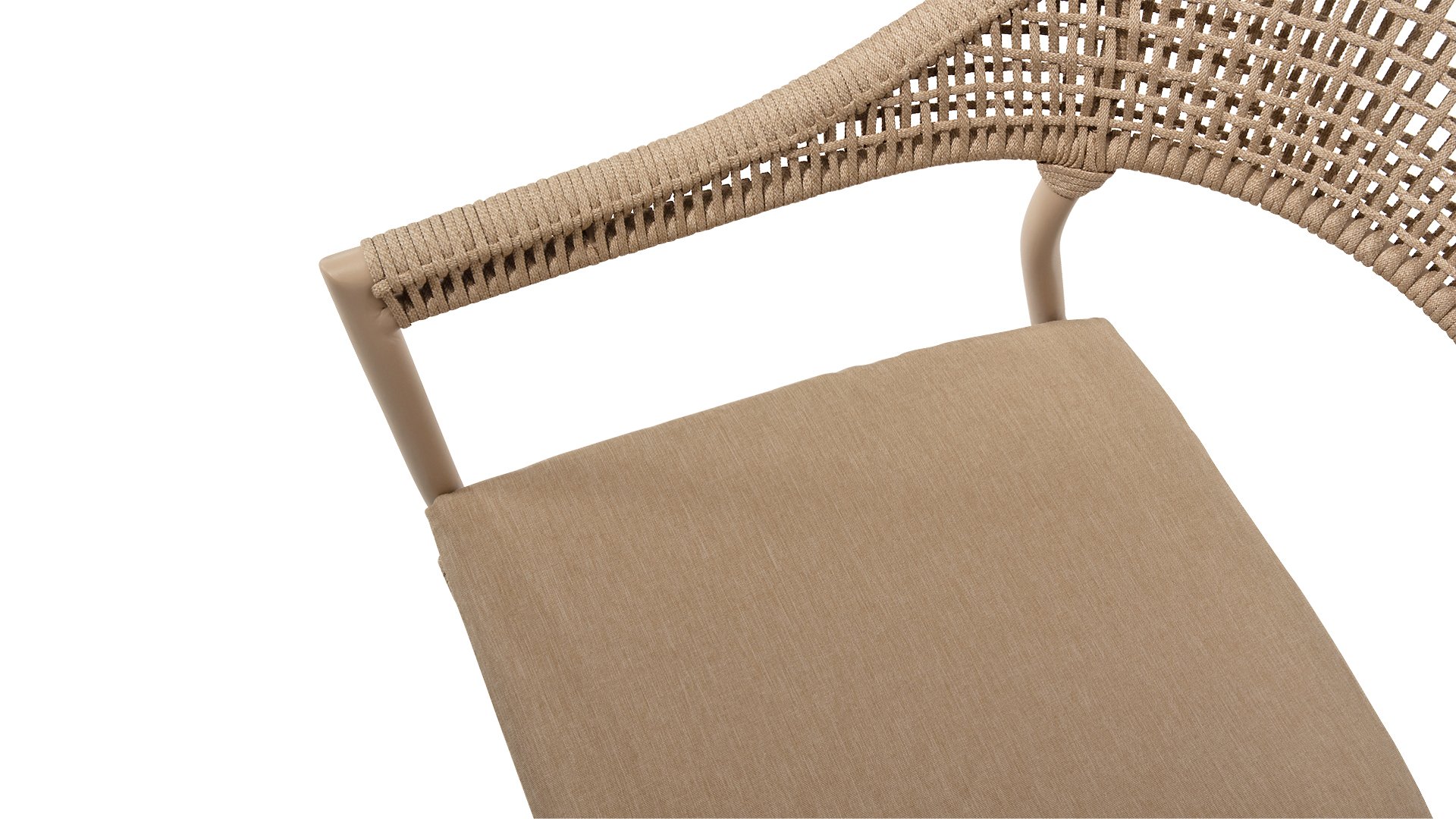 Die Terrassenmöbelserie Taste Sienna besticht durch ihren einzigartigen Stil, der durch moderne Seilelemente noch unterstrichen wird! Die Schönheit liegt im Detail. Die Rückenlehne der Sienna-Essgruppe von Taste by 4Seasons ist aus Seil geflochten und bietet so eine stabile und zugleich bequeme Sitzfläche. Das Gestell erzeugt ein verspieltes und minimalistisches Zusammenspiel fließender Linien und bildet eine solide Basis. Ein wahrer Augenschmaus! Die Sienna ist in den Farben Latte, Terre und Anthrazit erhältlich.