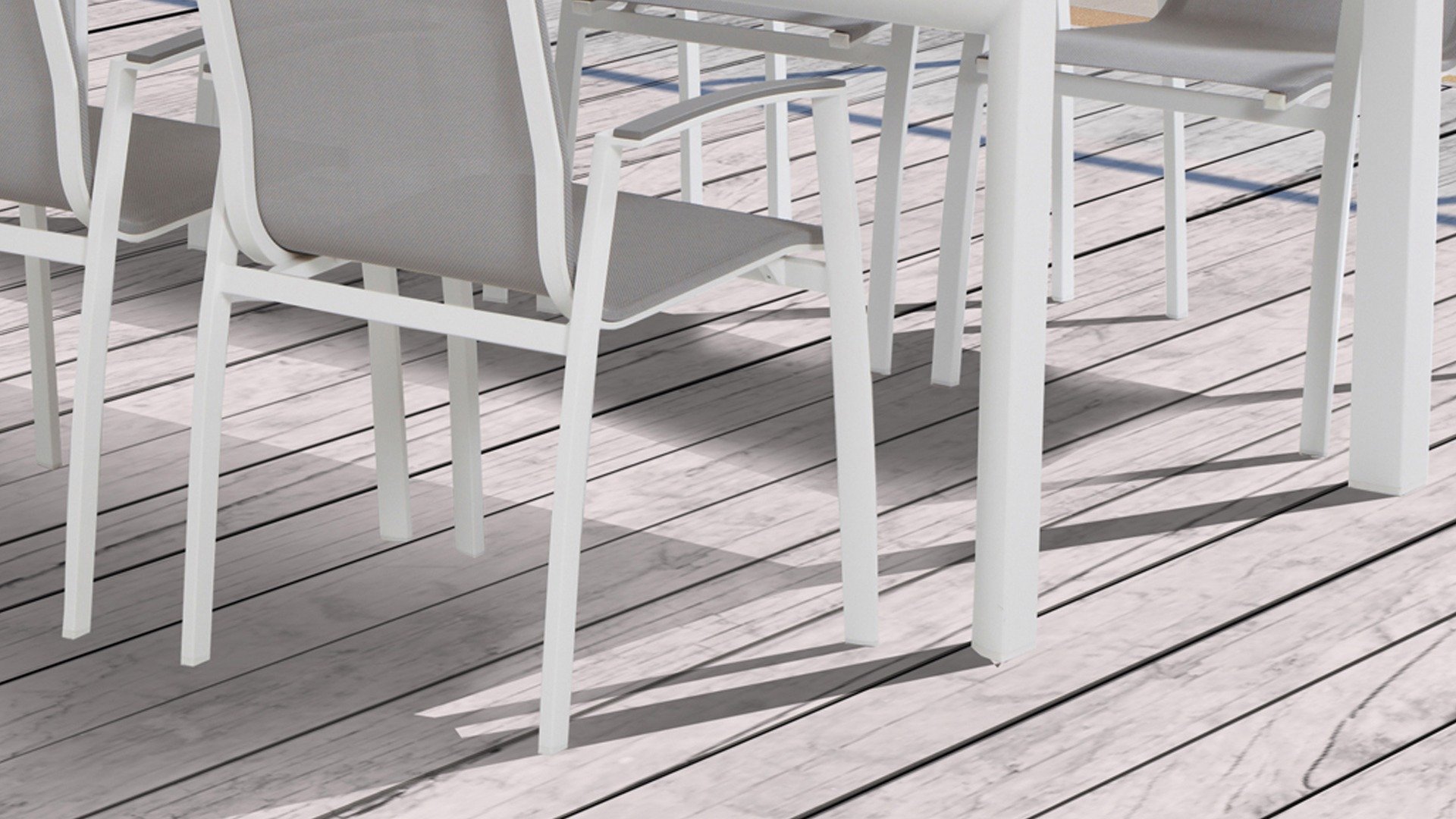 Das Design des Taste 4SO Gartenstuhls Torino hat ein Auge fürs Detail. Der Stuhl hat einen hervorragenden Komfort und das sorgt für einen gemütlichen Abend. Da der Taste Torino Dining mit viel Liebe zum Detail gestaltet wurde, fehlt es an Sitzkomfort an nichts. Schön und zeitlos passt der Taste 4SO Gartenstuhl perfekt auf die Terrasse. Die Armlehnen der Torino Gartenstühle sind ebenfalls mit einem strapazierfähigen Kunststoff in einer perfekt passenden und schönen Kontrastfarbe angereichert. Dank des flexiblen Rückentextilens können Sie bei jeder Gelegenheit bequem sitzen, denn die Rückenlehne folgt der Form des Rückens. Der Gartenstuhl ist sehr leicht und stapelbar. Dadurch können Sie den Stuhl im Winter problemlos verstauen, ohne viel Platz in Anspruch zu nehmen.