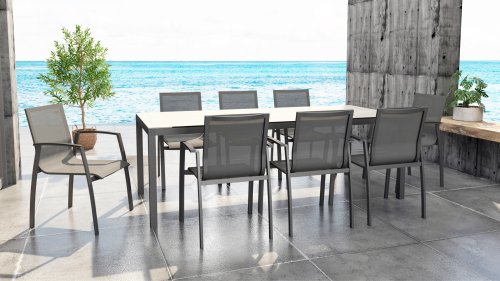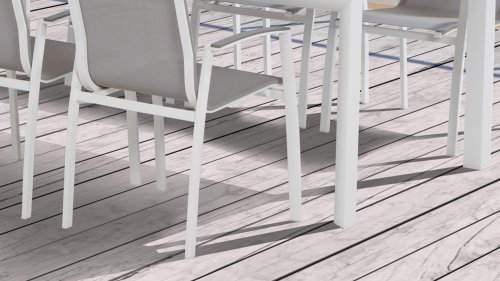 Das Gestell des Taste by 4 Seasons Outdoor Torino Gartenstuhls besteht aus Aluminium, Sitzfläche und Rückenlehne aus witterungsbeständigem Textilene. Textilene sorgt für optimalen Sitzkomfort! Der Taste Torino Gartenstuhl ist stapelbar und in den schicken Farben: Anthrazit & Weiß erhältlich.