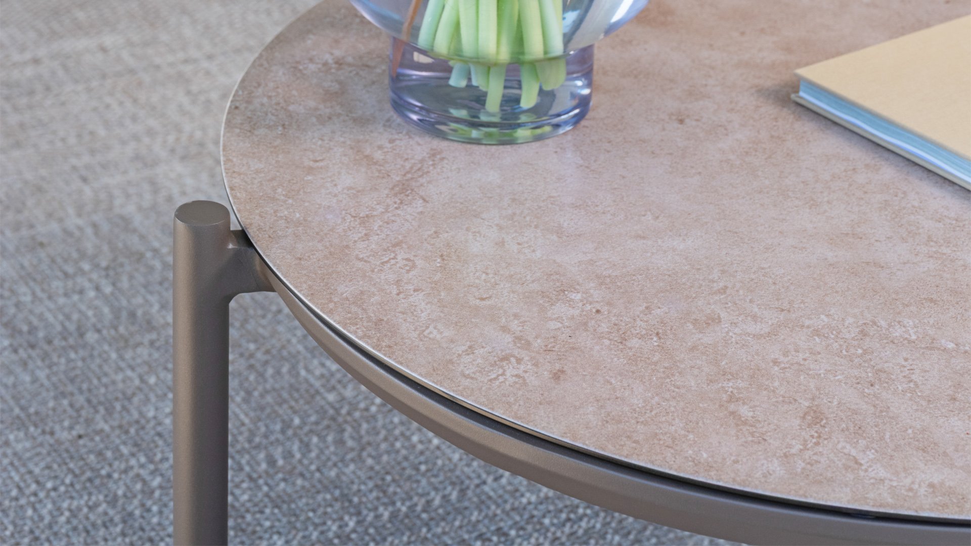 Der Kaffeetisch (Ø73x35cm) ist in den Farben Latte und Terre erhältlich und schafft ein warmes, natürliches Ambiente. Der Beistelltisch (Ø30x50cm) ist ebenfalls in Latte, Terre und Anthrazit erhältlich und lässt sich ideal mit Ihrer Einrichtung oder Ihrem Lounge-Set kombinieren oder als Kontrast dazu setzen.