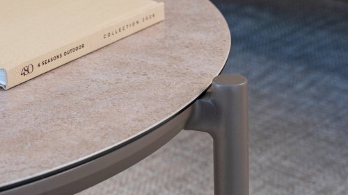 Entdecken Sie den Taste by 4 Seasons Outdoor Vic – eine raffinierte Kombination aus modernem Design, Langlebigkeit und zeitloser Eleganz. Ob Couchtisch oder Beistelltisch, Vic wertet jeden Innen- und Außenbereich auf. Die bedruckte Keramikplatte auf Glas verleiht dem Tisch eine luxuriöse Optik mit Natursteinoptik, während der pulverbeschichtete Aluminiumfuß für einen stabilen, pflegeleichten Stand sorgt.