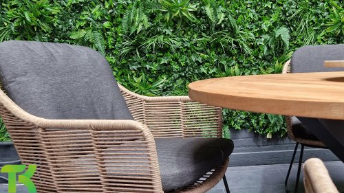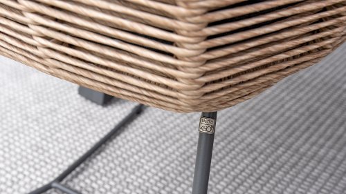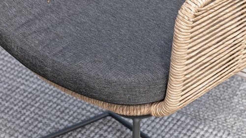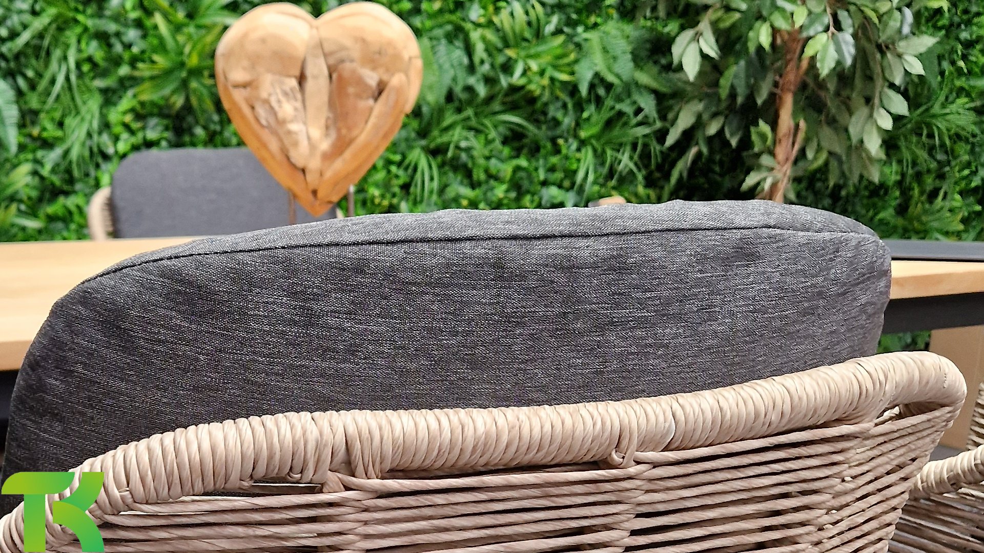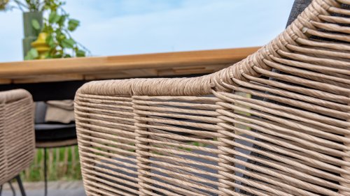 Cord hat eine Wasseraufnahme von 0%. So hat Feuchtigkeit keine Chance, sie perlt förmlich ab. Das Material kann nach einem Regenschauer mit einem Tuch abgewischt werden, danach ist es trocken. Die Cord ist nicht nur wasserabweisend, sondern auch salz- und chlorunempfindlich. Sehr schön, wenn Sie zum Beispiel Ihre Liegen neben den Pool stellen möchten oder am Meer wohnen. Die Reinigung ist ein Kinderspiel. Ein wenig Wasser und Seife reichen aus, um die Schnur zu reinigen. Ideal, wenn Sie nicht zu viel Zeit mit der Wartung verbringen möchten. Cord besteht aus fast den gleichen Komponenten wie Geflecht und Rope und ist damit ein witterungsbeständiges und starkes Material, das perfekt für den Einsatz im Freien geeignet ist. Es wurde unter allen möglichen Wetterbedingungen getestet und hat diesen Test natürlich mit Bravour bestanden. Das Cord ist zu 100 % recycelbar. Das macht es zu einem relativ langlebigen Material, das gleichzeitig sehr stark ist. Eine willkommene Ergänzung unseres Sortiments und ein Material, das aufgrund seiner fantastischen Eigenschaften jahrelang draußen bleiben kann