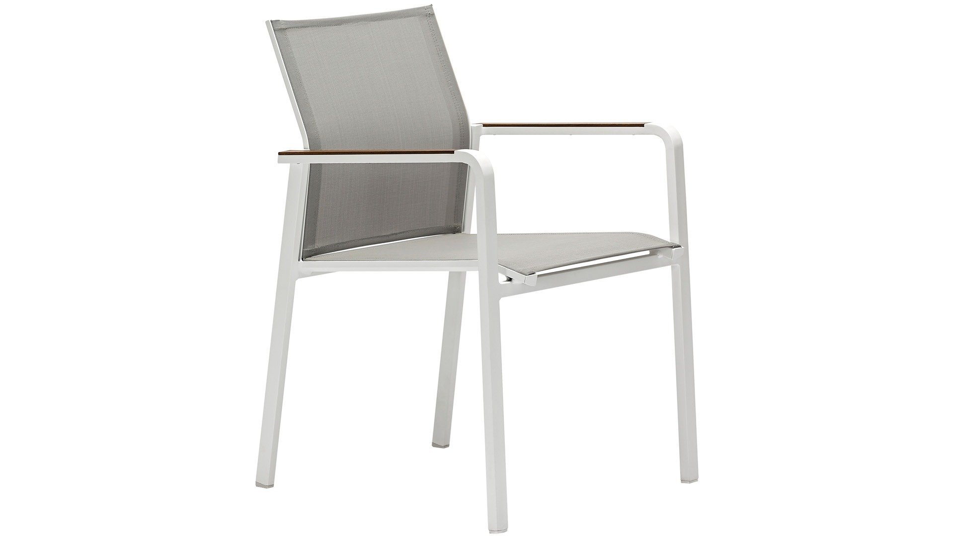 Der Zebra Greenline Bee Gartenstuhl stapelbare Serie. Erhältlich in den folgenden Ausführungen: Zebra Bee Graphite Aluminiumarmlehne, Zebra Bee Graphite Teakarmlehne & Zebra Bee White Teakarmlehne. Die Rahmen sind pulverbeschichtetes Aluminium in den Farben Graphite oder Weiß. Das verwendete Textilene ist Batyline®-Gewebe, ein bewährter synthetischer Stoff, der atmungsaktiv ist und mehrere Jahre lang reißfest ist. Bei den Graphitstühlen ist die Farbe ein Kohlegrau, die weiße Version enthält ein Hellgrau.