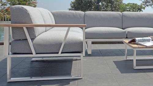 Zebra hat eine Leidenschaft für Design und innovative Lösungen und das zeigt sich im Zebra Belvedere Lounge Set! Zebra hat sich zu einer absoluten Top-Marke für komfortable Outdoor-Möbel entwickelt. Das linke Sitzelement des Belvedere 3-Sitzer-Sofas ist verstellbar, sodass Sie bequem mit erhobenem Kopf liegen und so eine wunderbare „Sonnenliege“ haben.