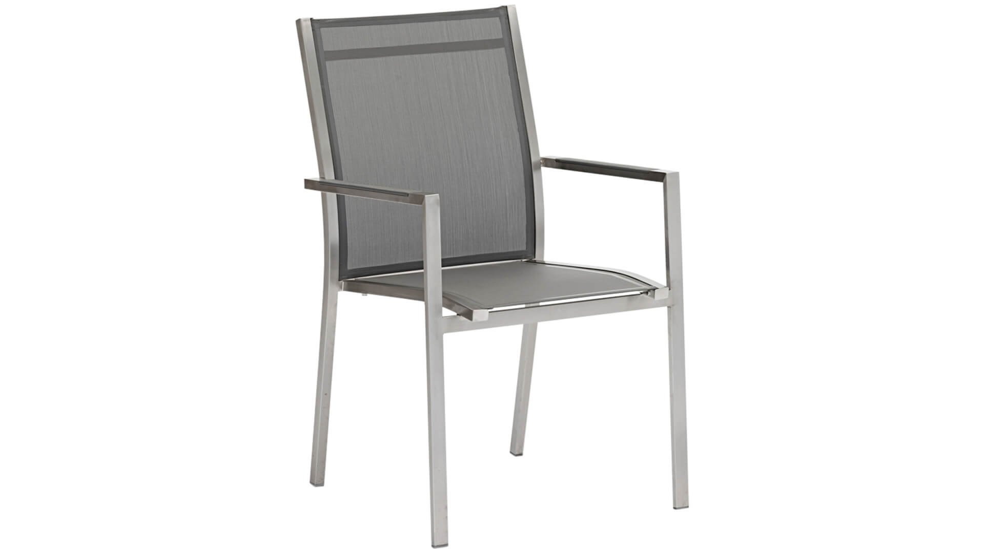 One Stapelstuhl Dark Grey Textilene Armlehne