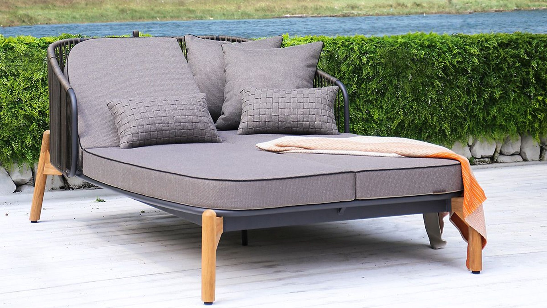 | Materialien Liege | Pulverbeschichtet Aluminium/Stahl, Teak, Rope |
