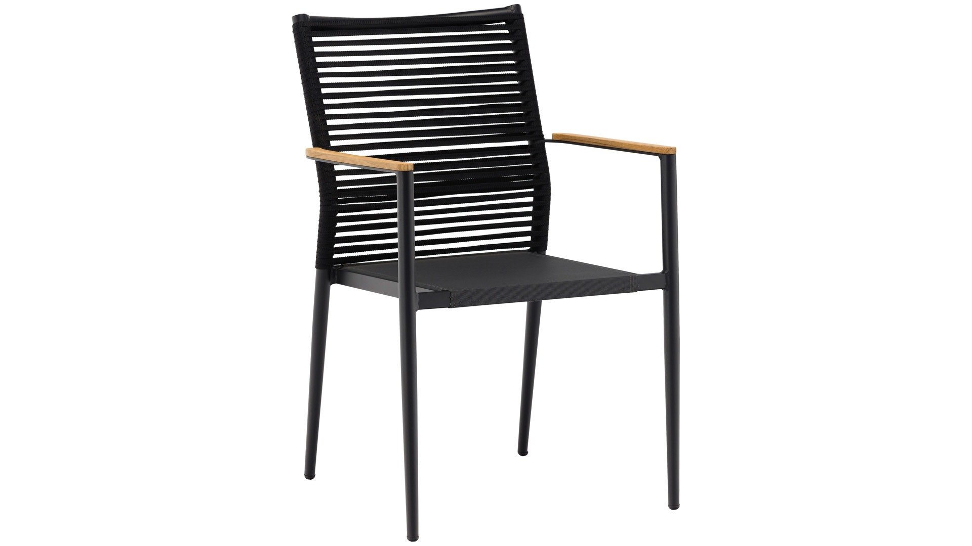 Das Zebra Greenline Spider Gartenstuhl stapelbar Serie. Der Rahmen aus pulverbeschichtetem Graphit-Aluminium ist mit einem Dar Grey farbenen Batyline® Stoff bezogen. Das verwendete Batyline® Textilene ist ein bewährter synthetischer Stoff, der atmungsaktiv und reißfest ist für mehrere Jahre. Die Rückenlehne besteht aus Rope, auf dem Textilenensitz befindet sich ein angenehmes Sitzkissen. Die Greenline-Serie von Zebra kombiniert unter anderem Zeitgenössisches, Ökologie und Nachhaltigkeit miteinander. Im Corporate-Konzept Greenline steht die Frage der Nachhaltigkeit und die Auswahl umweltfreundlicher Materialien im Vordergrund.
